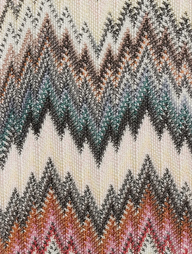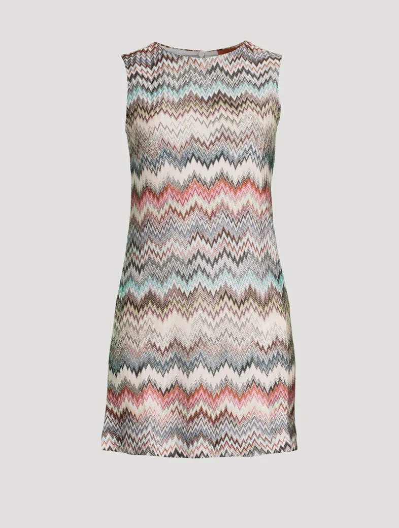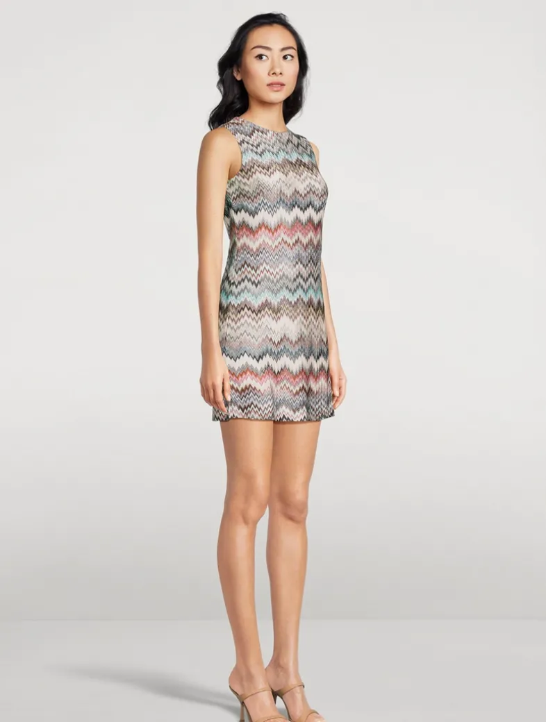 Cut to a sheath silhouette, this sleeveless mini features Missoni’s signature jagged stripe design.