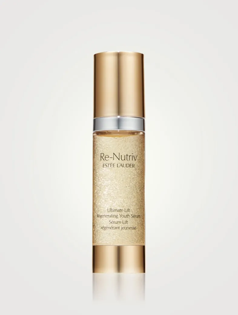 Estée Lauder’s Re-Nutriv Ultimate Lift Regenerating Youth Serum is a luxuriously concentrated treatment that creates a more lifted look and intensely firmer feel. It strengthens skin against signs of aging. The serum surges with powerful Ultimate Lift technology, potent firming ingredients and concentrated levels of Floralixir™ Dew. Precious droplets suspended in the silky-soft serum encapsulate key youth boosters, then burst in a rush of renewal for a younger, radiant look.
