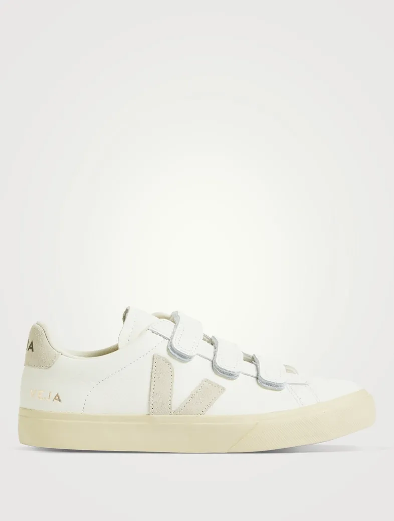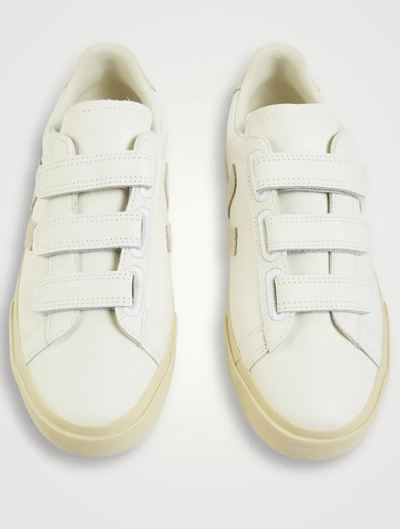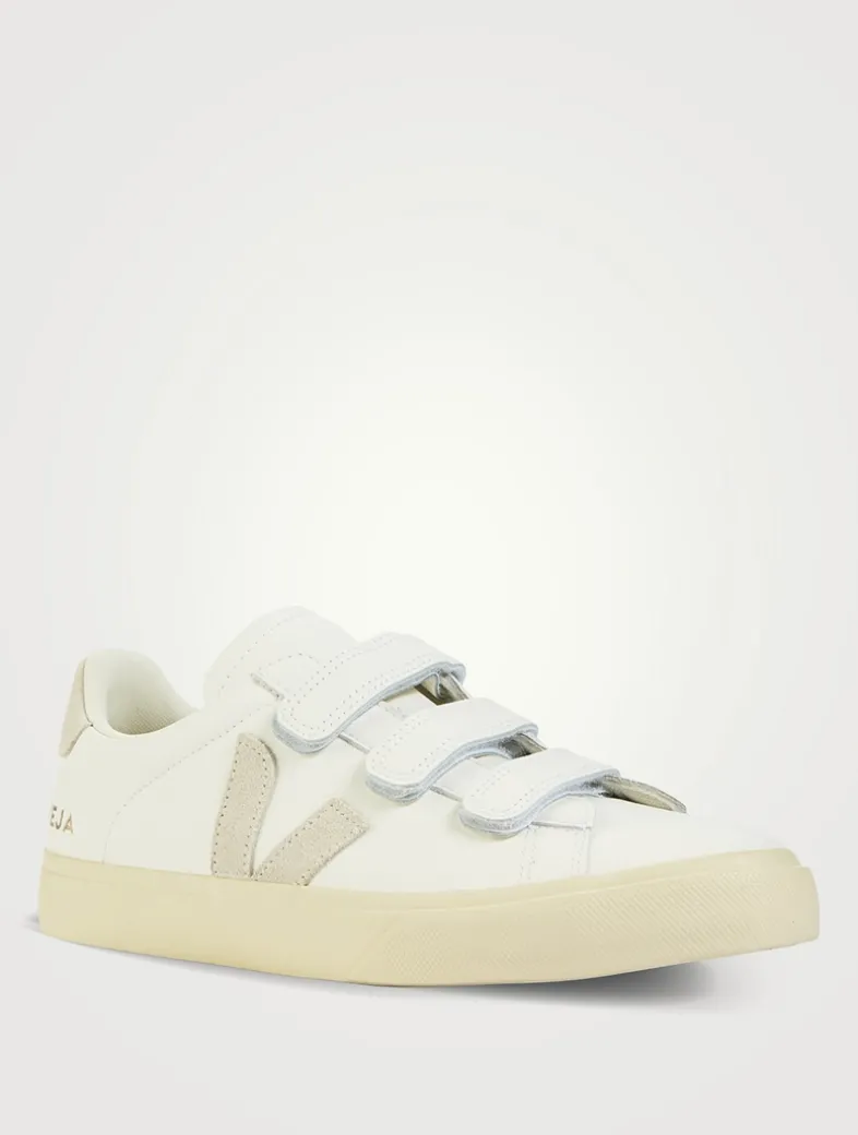 These sneakers are crafted from leather that is smooth and light, and it undergoes an innovative tanning process where no chrome, heavy metals, or dangerous acids are involved. This sporty pair have a rounded toe and three grip-tape straps at the vamp.