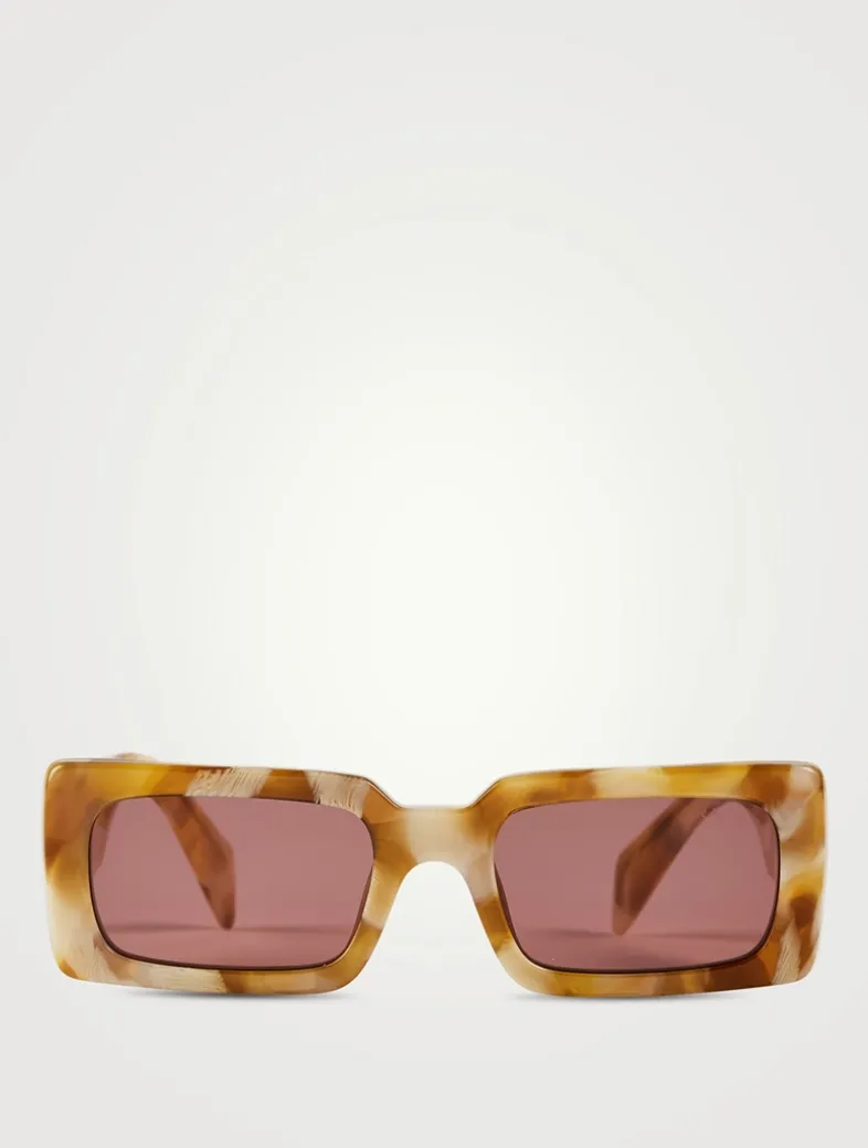 Acetate sunglasses with a distinctive contemporary rectangular shape. The bold rims of the front are paired with chunky temples embellished with the Prada lettering logo.
