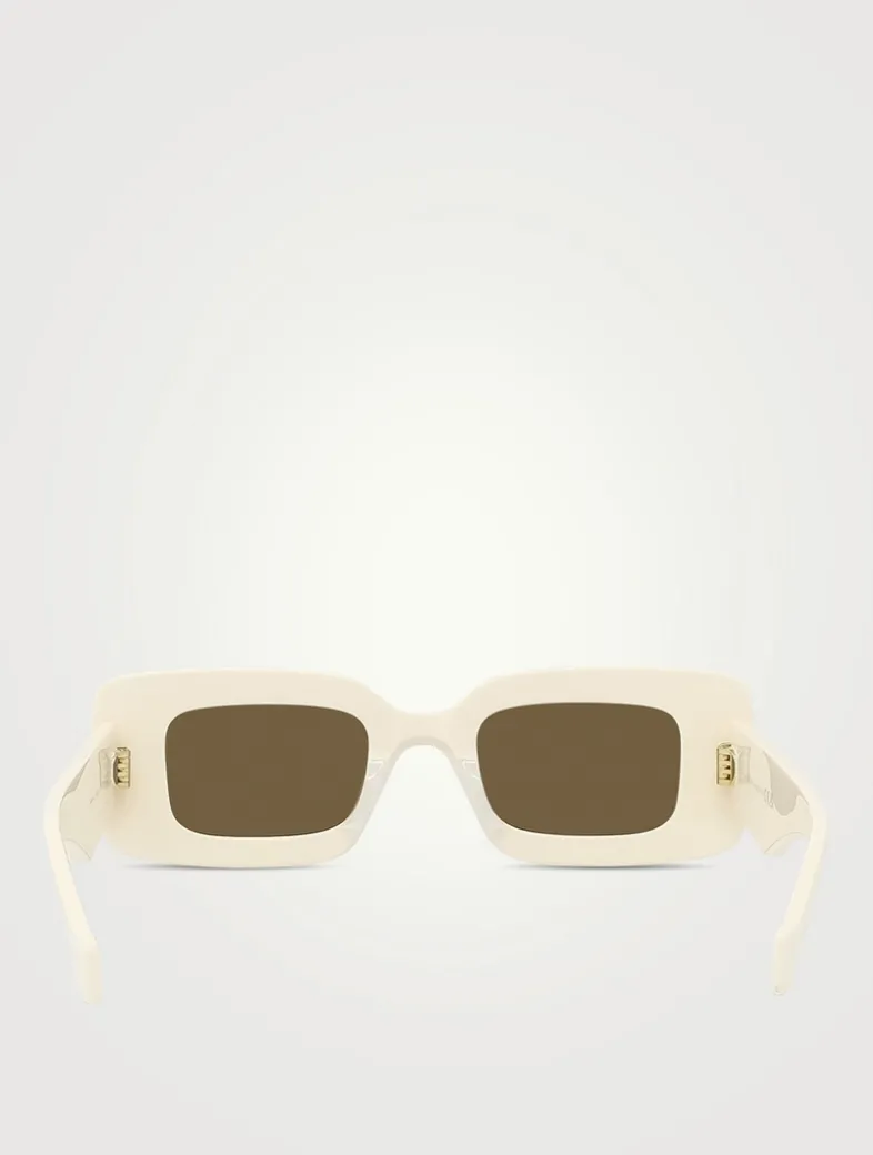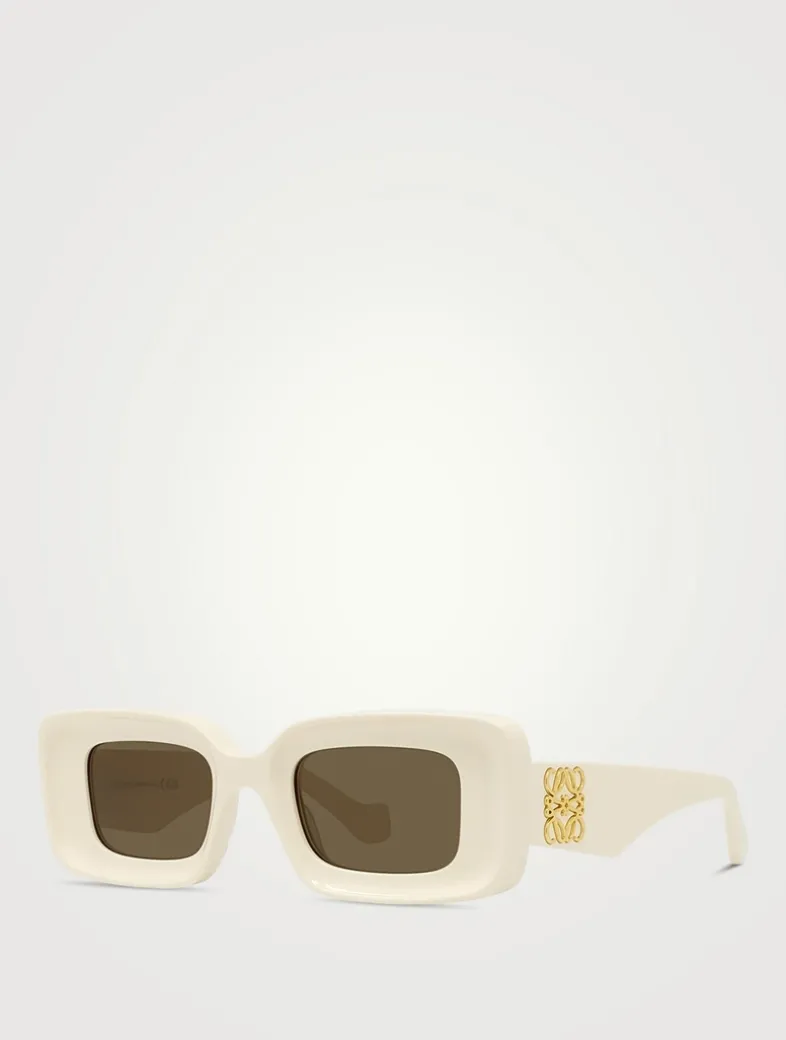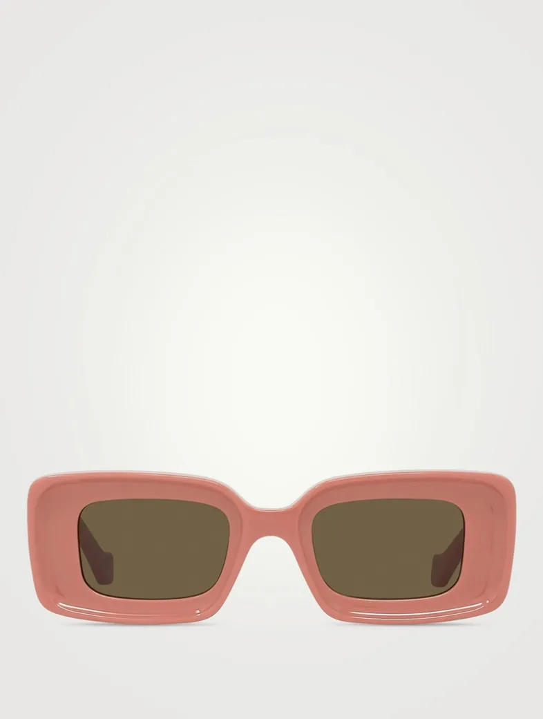 These sunglasses have a rectangular shape with a new sculpted bevelled, inspired by Paula’s Ibiza original shape and reinterpreted in an easier way. They feature LOEWE’s Anagram logo on the temples.