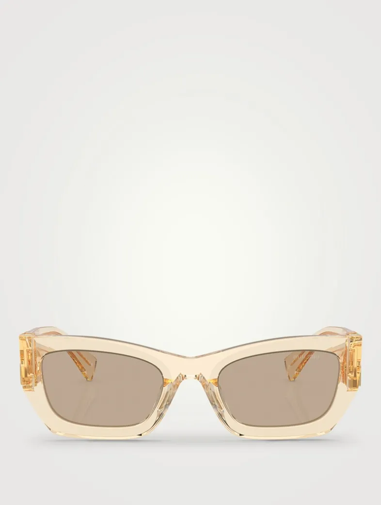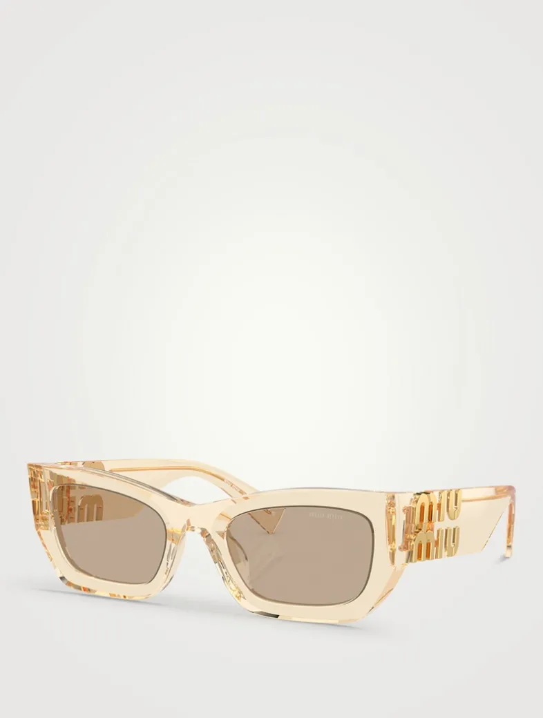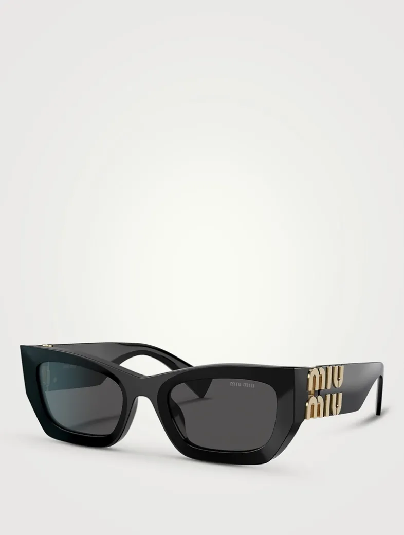 Bold and glamourous, these sunglasses were designed to make a statement. Featuring a rectangular silhouette accented by geometric details and finished with prominent Miu Miu logo integrated into the hinge of the temples.