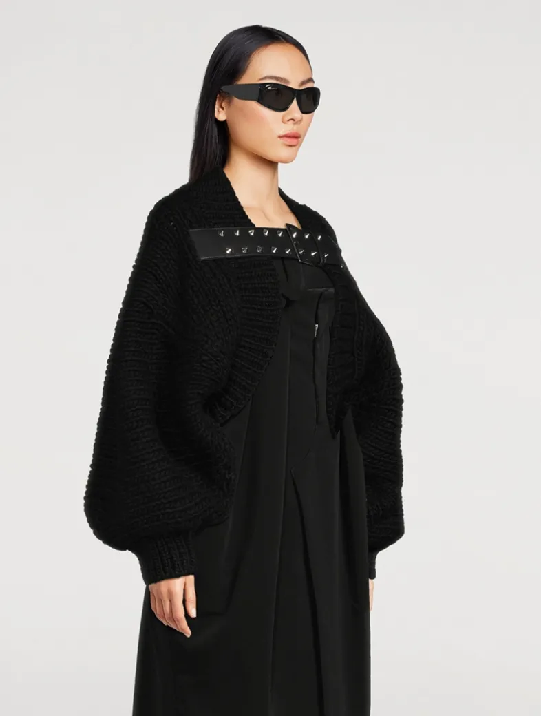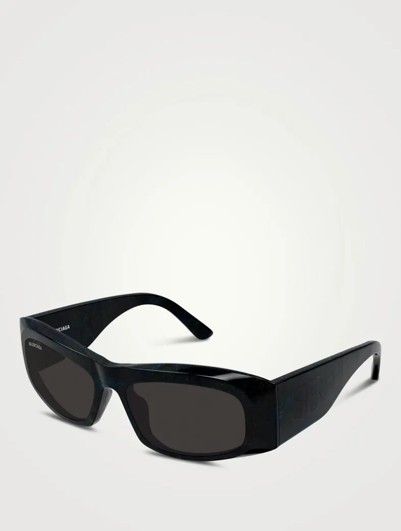 These bold sunglasses are made in Italy from recycled acetate. They have a rectangular shape and wide arms.