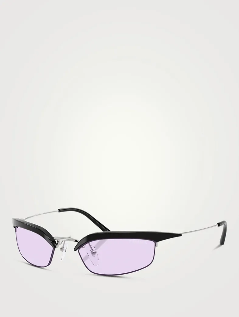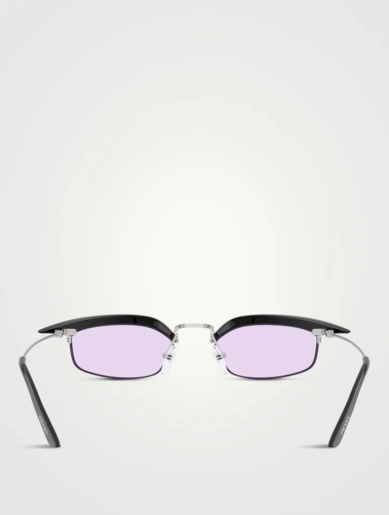 A design that was first introduced at the Prada fashion show featuring a sharp acetate bar that gives the frame a distinctive