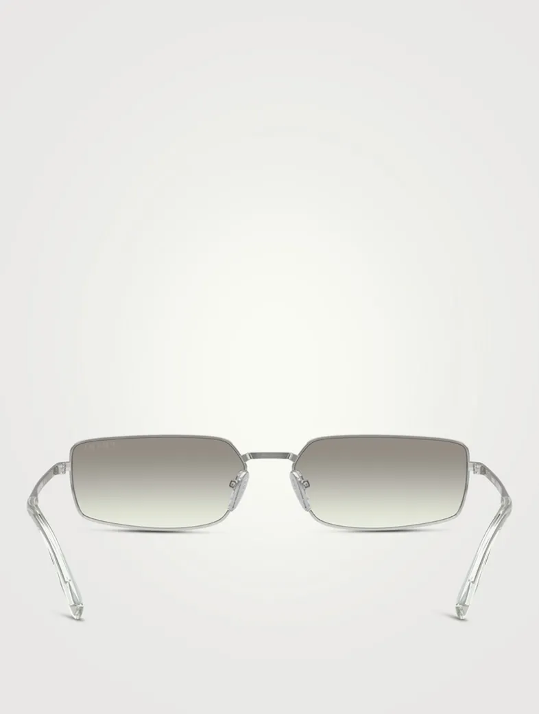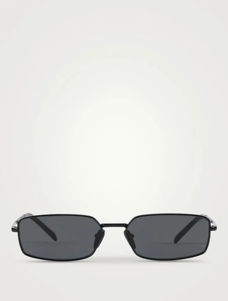 Crafted in Italy, these sunglasses boast a contemporary rectangular shape and feature metal temples embellished with acetate end tips. This style is RX-able.
