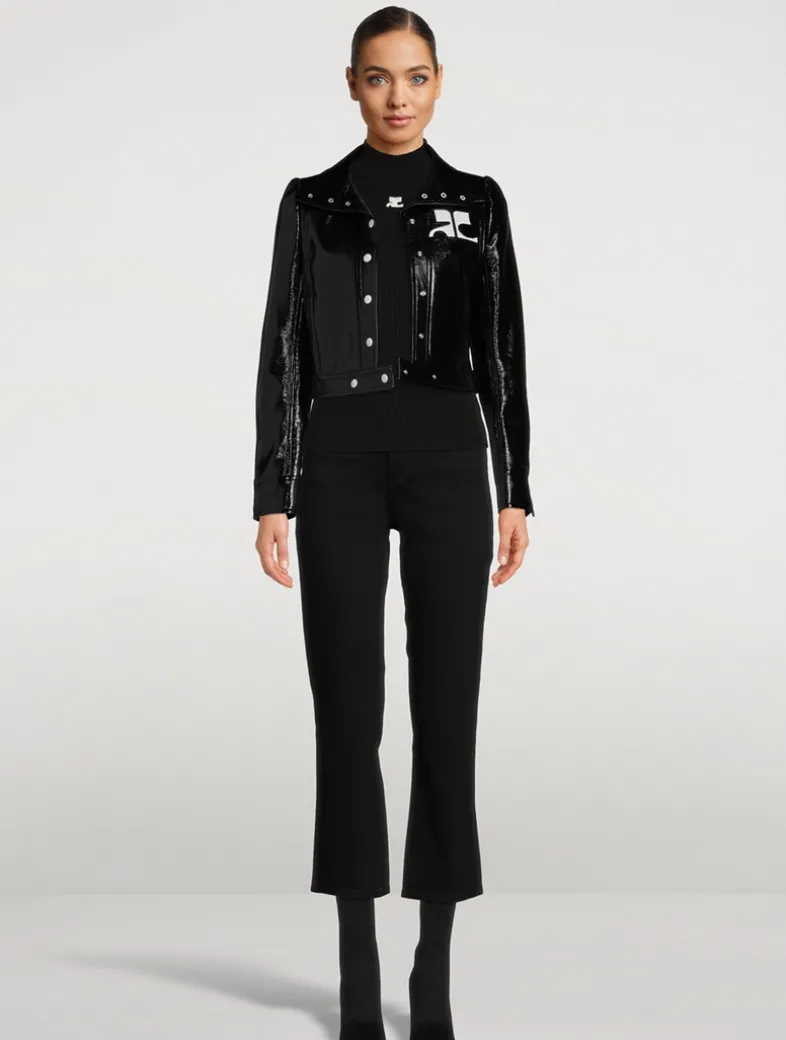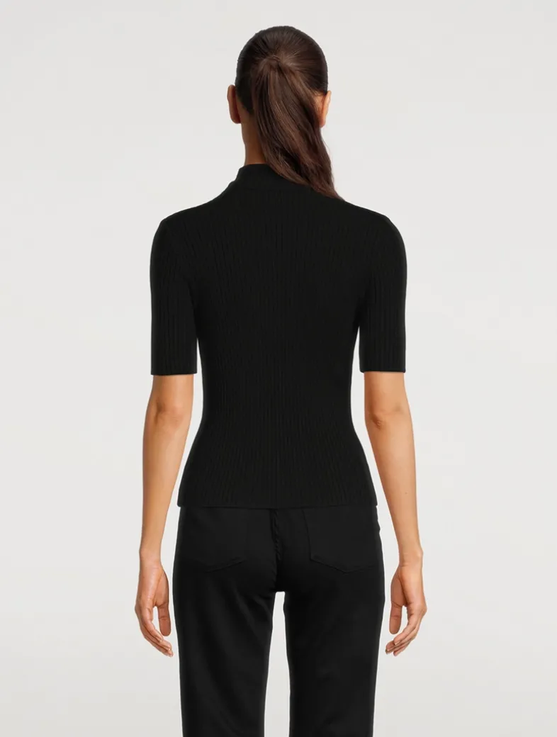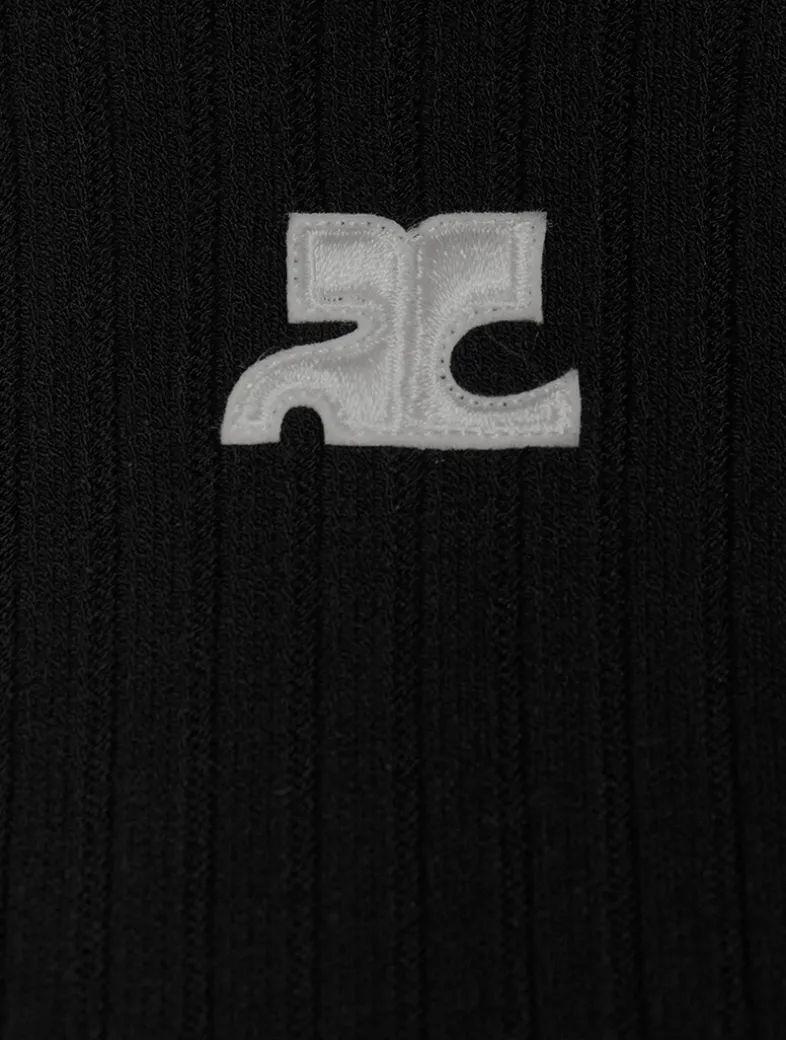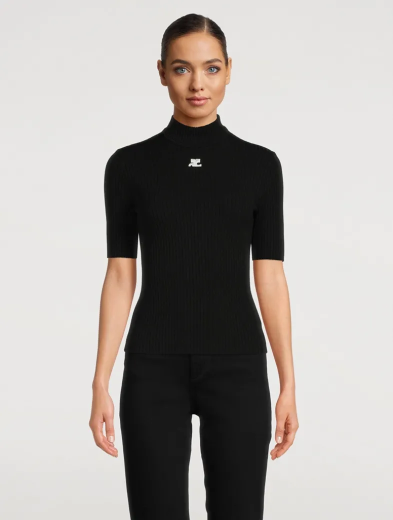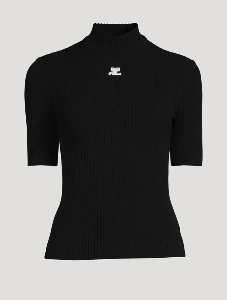 Accented with an embroidered AC logo at the front, this rib-knit top has a sleek and sporty look with short sleeves and a high collar.