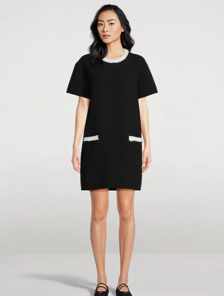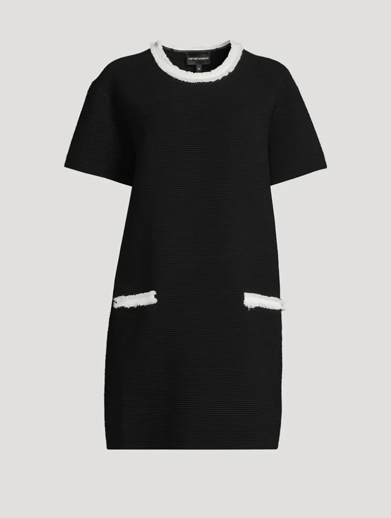 This dress is made of ottoman fabric, woven with all-over embossed ribs, making it a versatile addition to your wardrobe. The style is embellished with fringed trim.