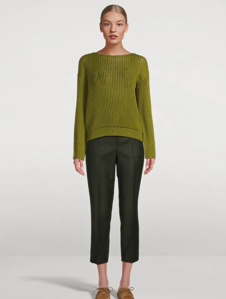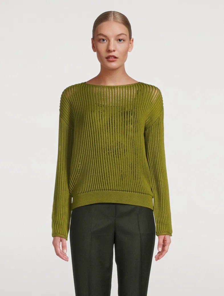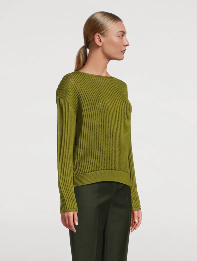 A versatile staple, this long-sleeve sweater features a round neckline in a relaxed silhouette. This style is crafted using a lightweight Pima cotton with a ribbed texture.