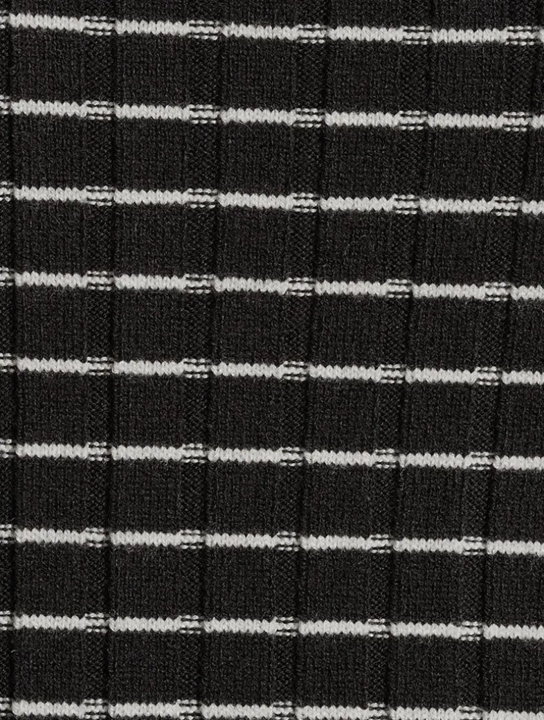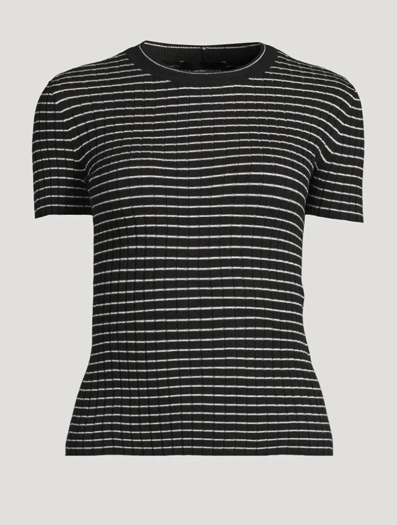 This crewneck tee is made from a viscose blend in a rib-knit. The horizontal striped pattern creates a check effect that distinguishes the style.