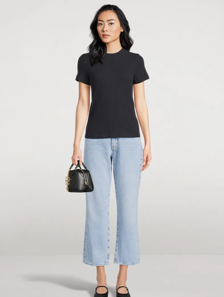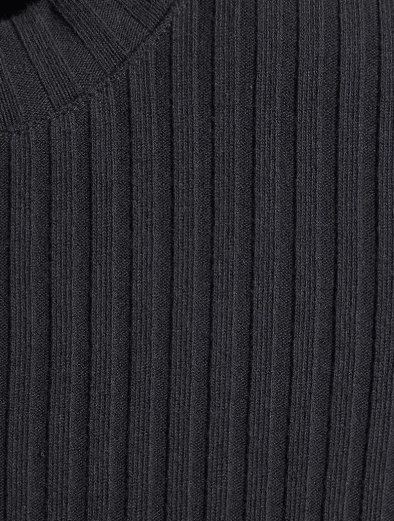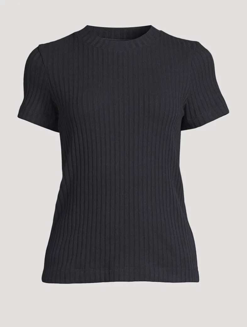 A soft, sweater-like ribbed construction adds dimension and depth to this slim-fit cotton-blend top.