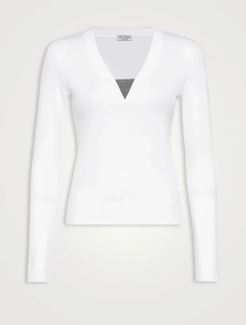 Stretch cotton ribbed jersey T-shirt with precious insert