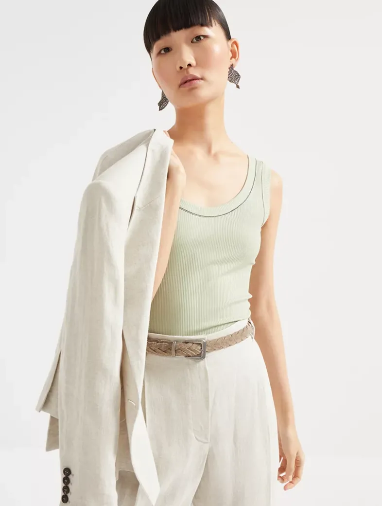Comfort cotton ribbed jersey top with monili