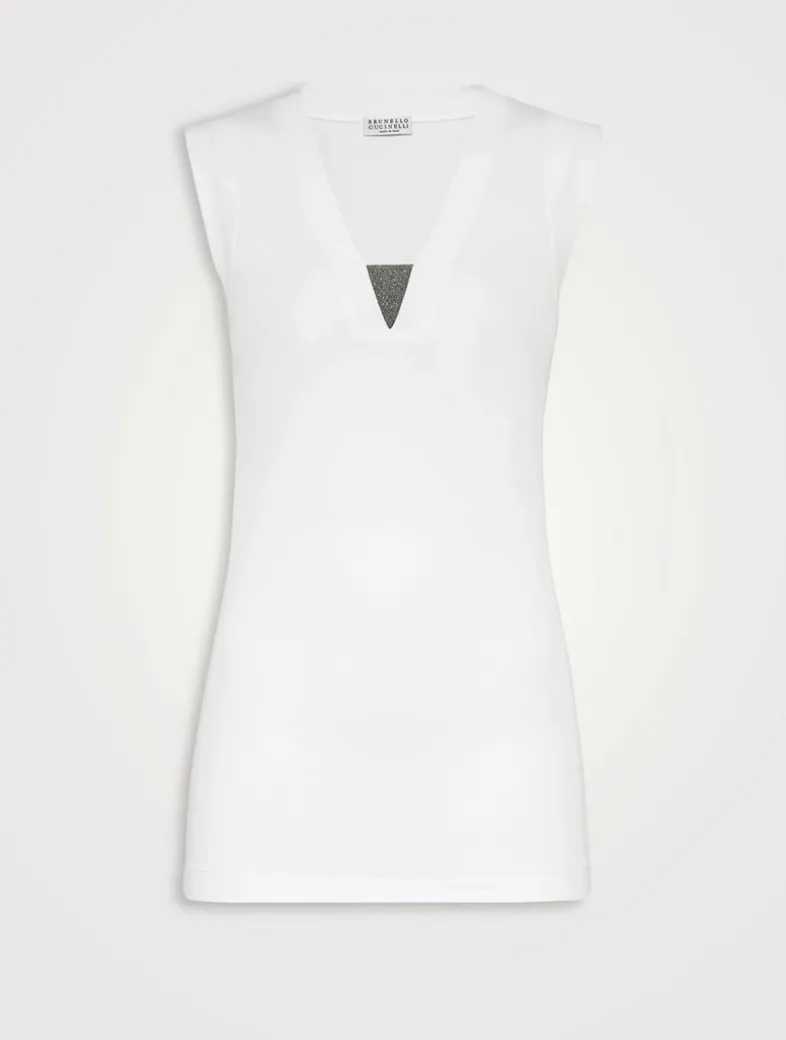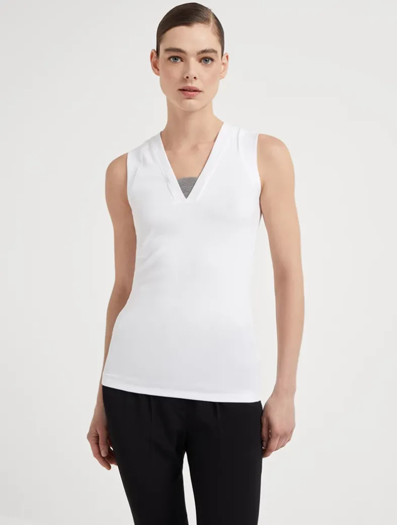 Stretch cotton ribbed jersey top with precious insert