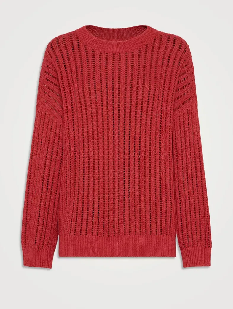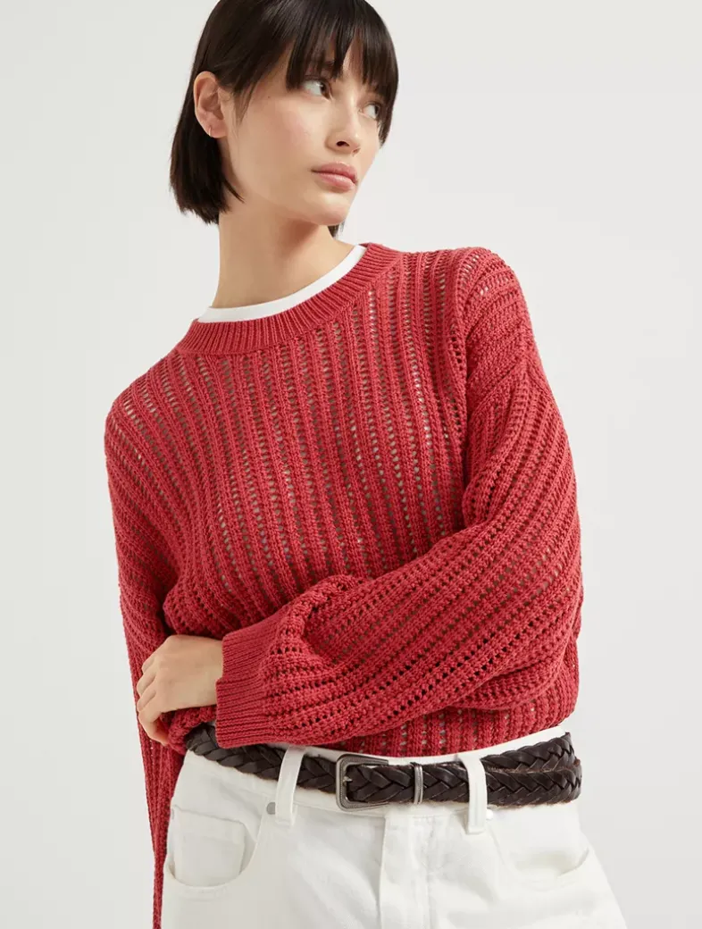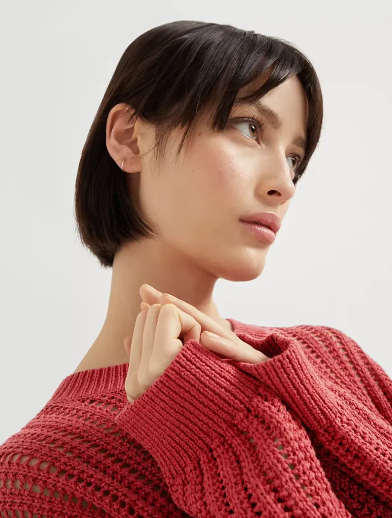 Cotton openwork rib sweater with monili
