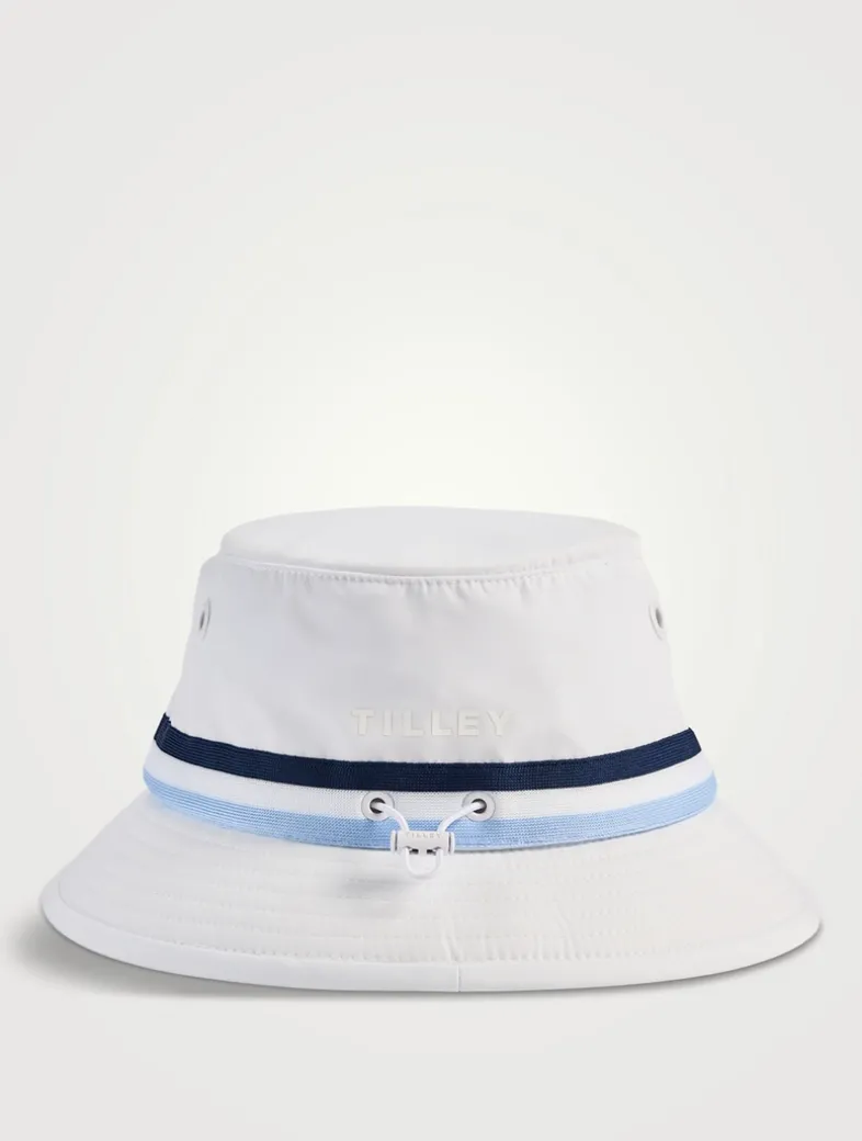 A stylish twist on the original Tilley T1, this breathable, water-repellent bucket hat features an external elastic tricolour sweatband ribbon for a comfortable, secure fit. Made from bluesign® and OEKO-TEX® certified material with a UPF 50+ rating, it’s complete with a hidden pocket, a magnet for your ball marker, and ventilation grommets for added airflow.