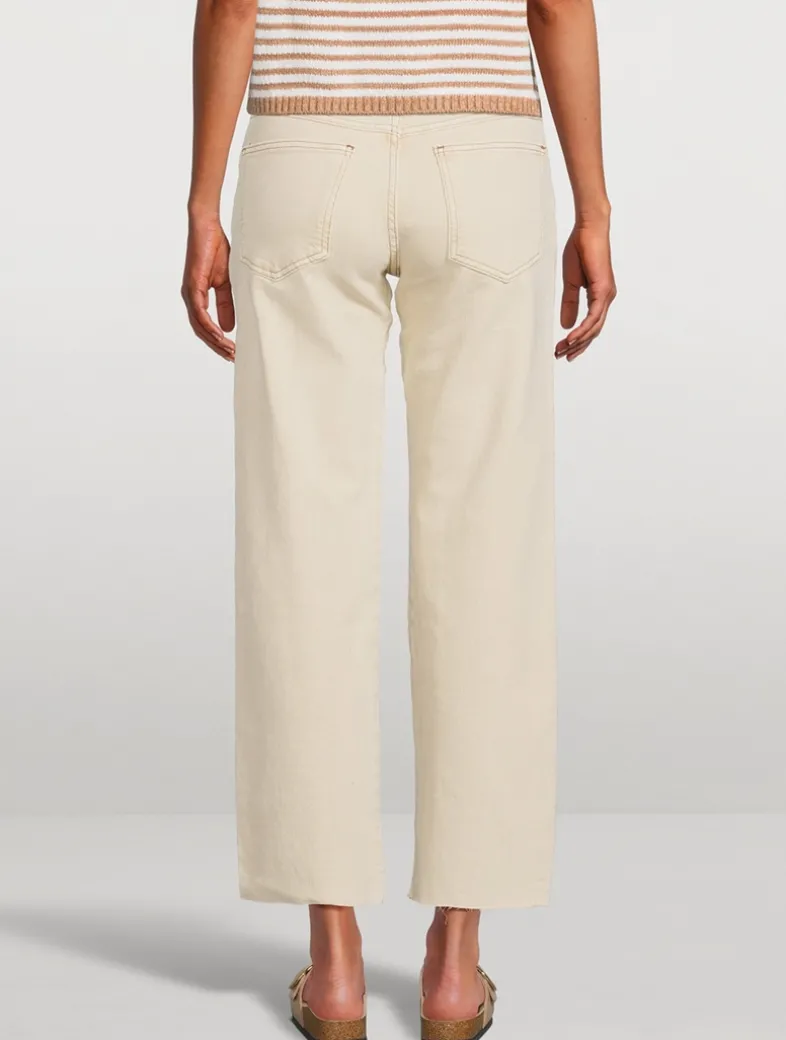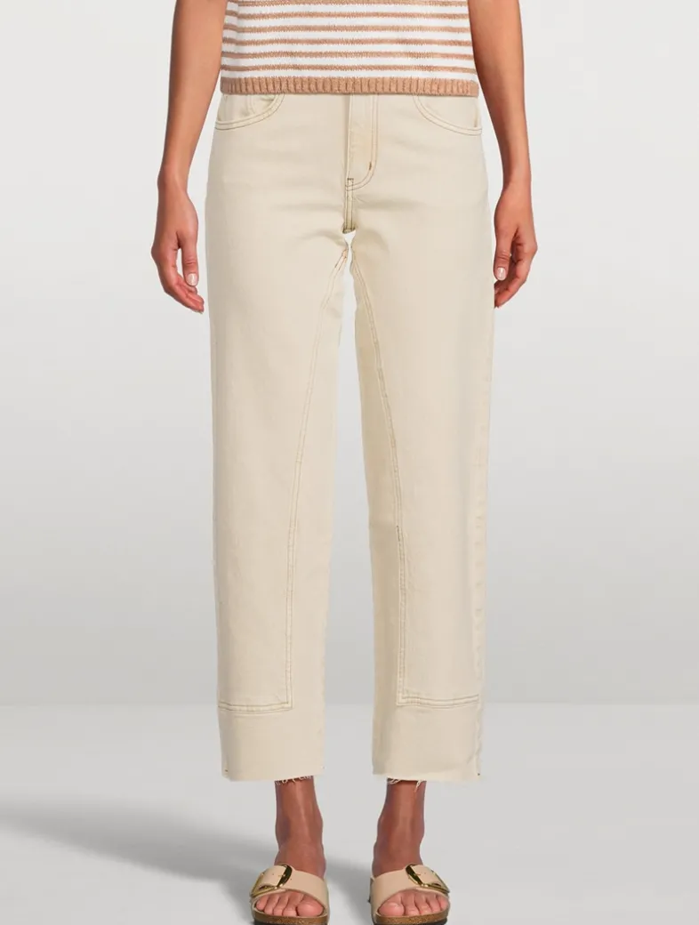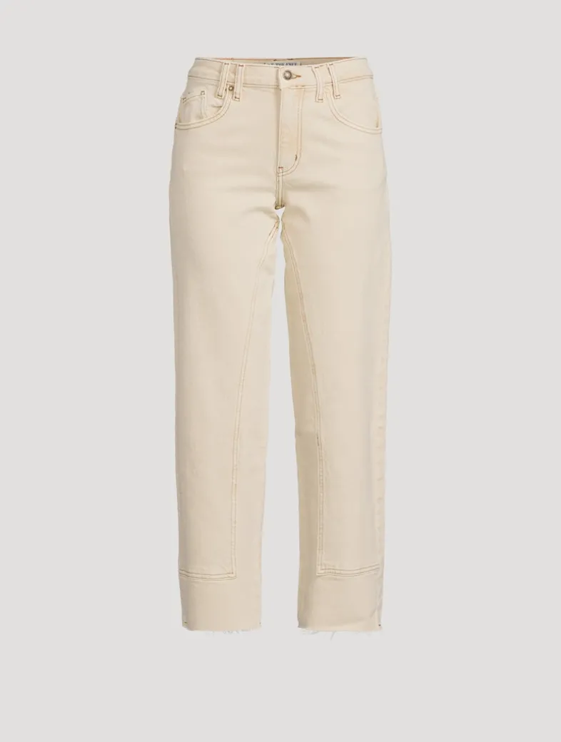 Cut to a mid rise, this straight silhouette is crafted with semi-rigid denim and features five-pocket styling and utility seaming throughout. This style hits right at the ankle; for a longer, full-length fit, please size up one size.