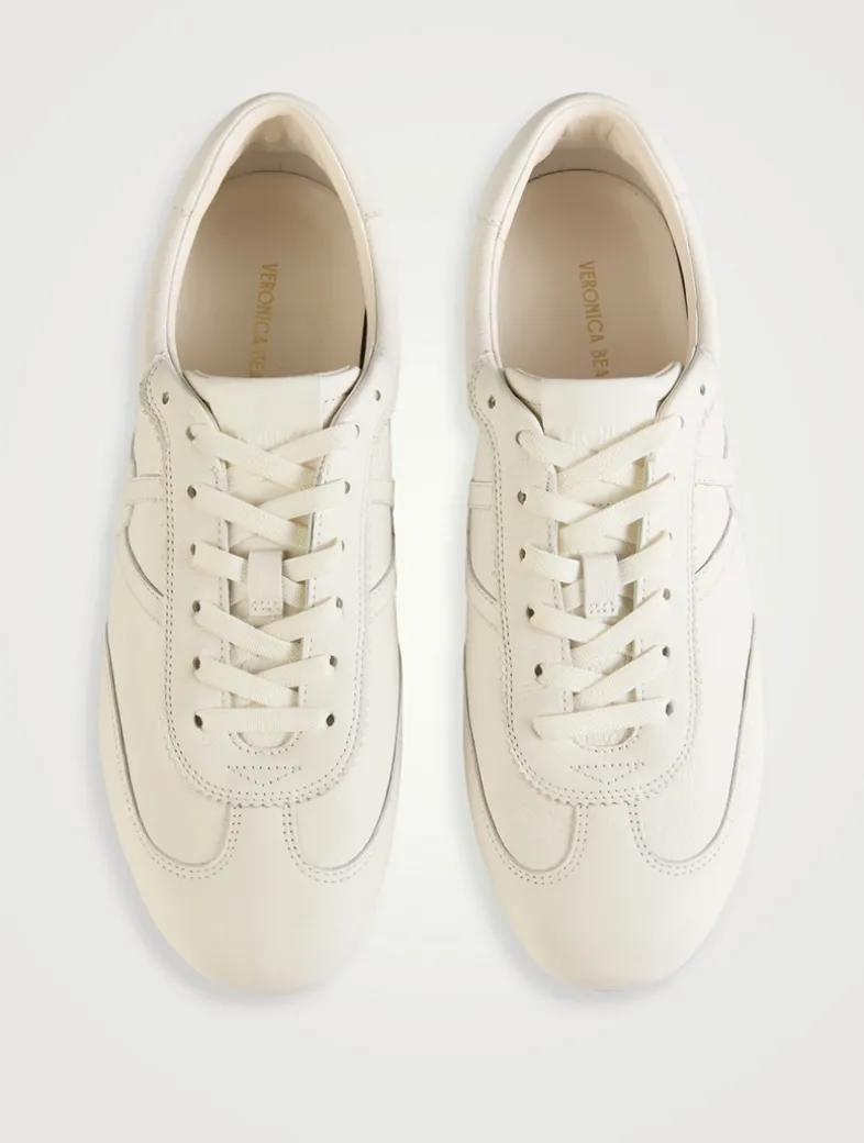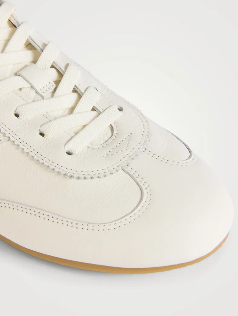 Crafted from buttery leather with a panelled construction, these low-top sneakers have a laced closure and rounded toe.