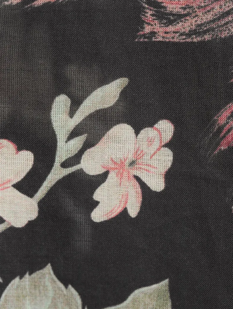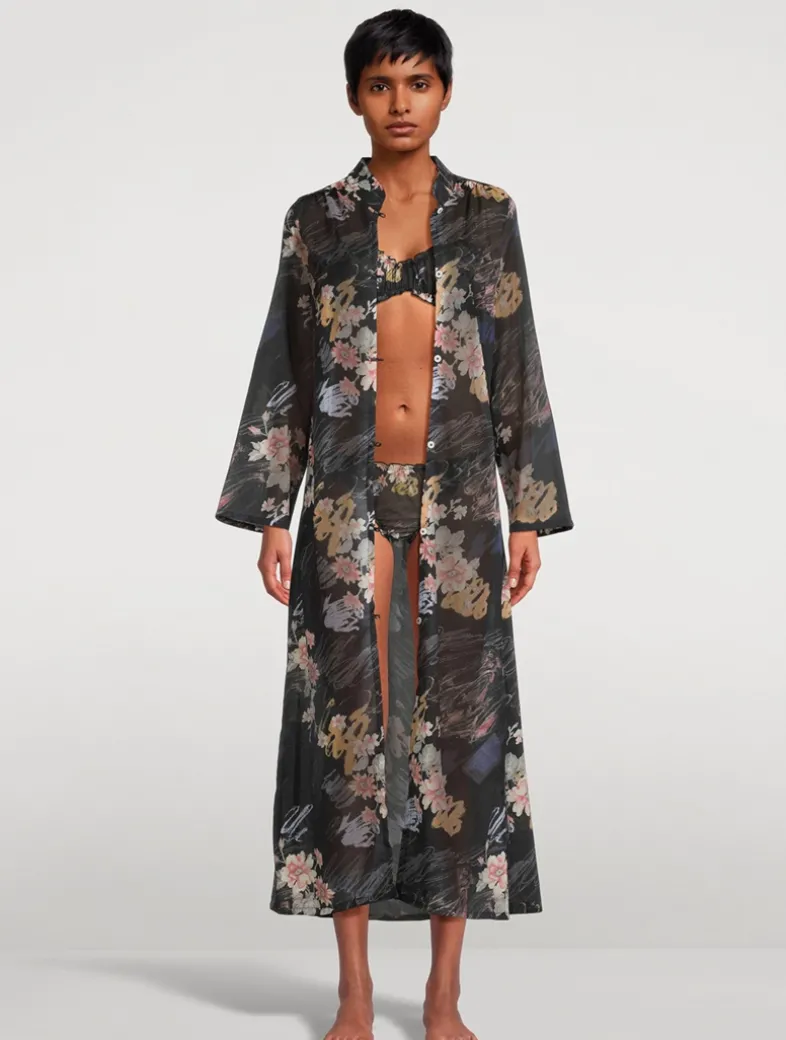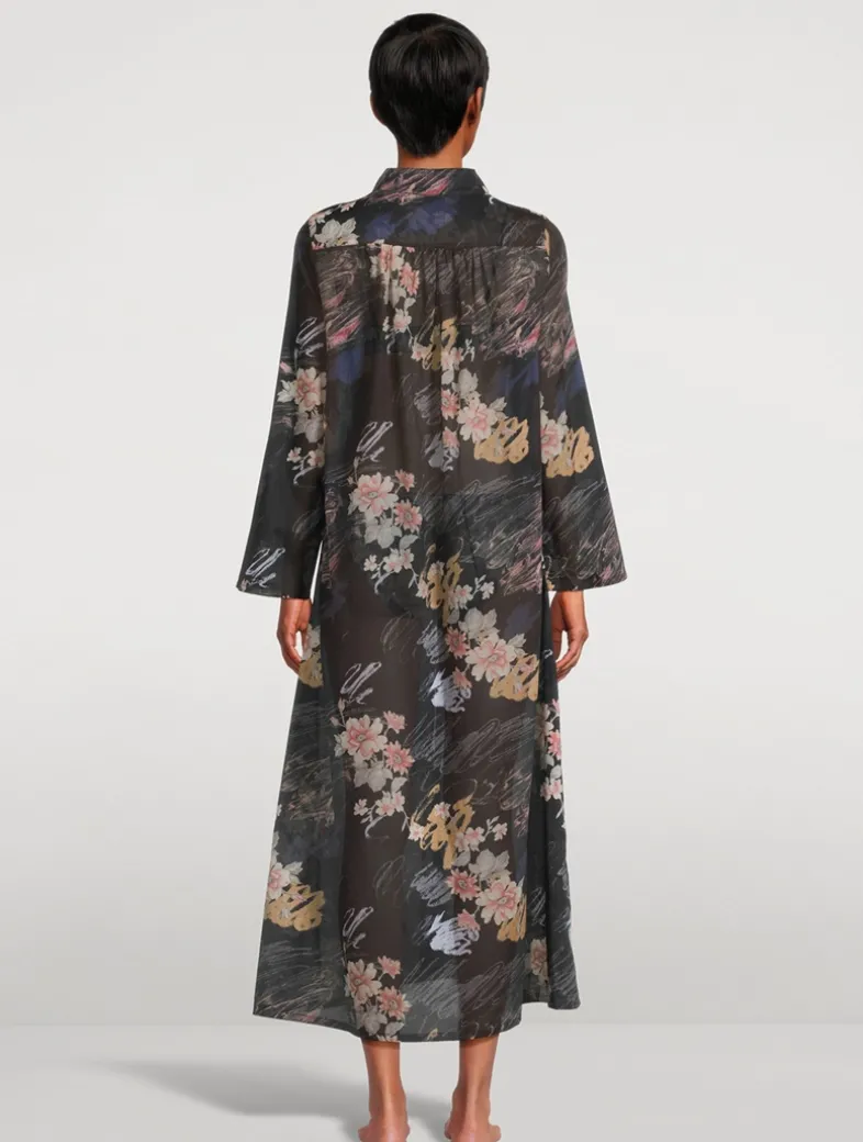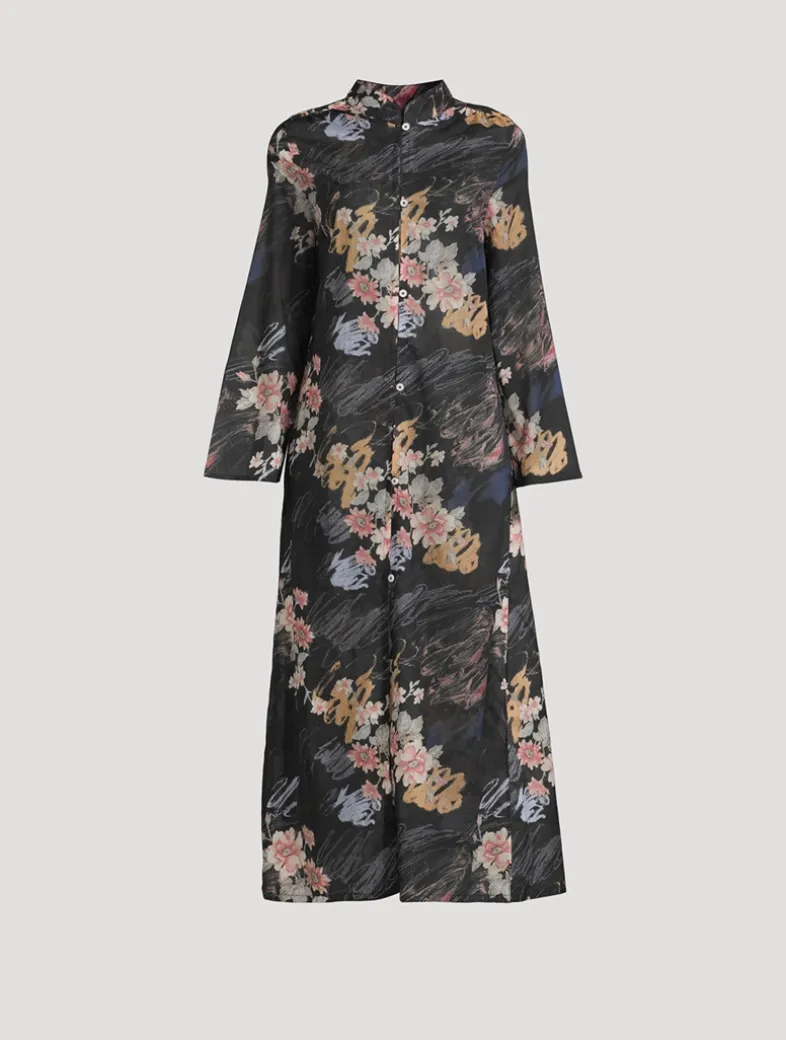 With a structured neckline, loop button closure, soft gathers, and flared sleeves, this long, flowing piece is refined, comfortable, and effortlessly confident. Lightweight with fine, tightly woven threads, the cotton voile fabric is breathable, and softly durable, with a name that comes from the French word