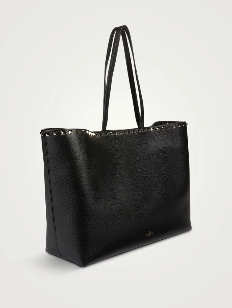 Made in Italy, this everyday shopper is crafted in grained calfskin leather. The top edge is adorned with platinum studs and the interior is designed with a zippered flat pocket and double flat open pocket. Comfortable to wear on the shoulder.