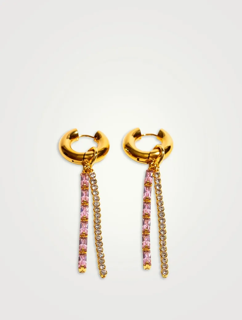 Plated in 24k gold, these chunky hoop earrings feature removable crystal chain charms. According to the brand’s colour therapy theory, gold represents success, inspiration, and generosity.