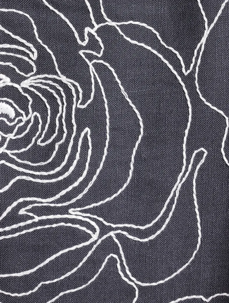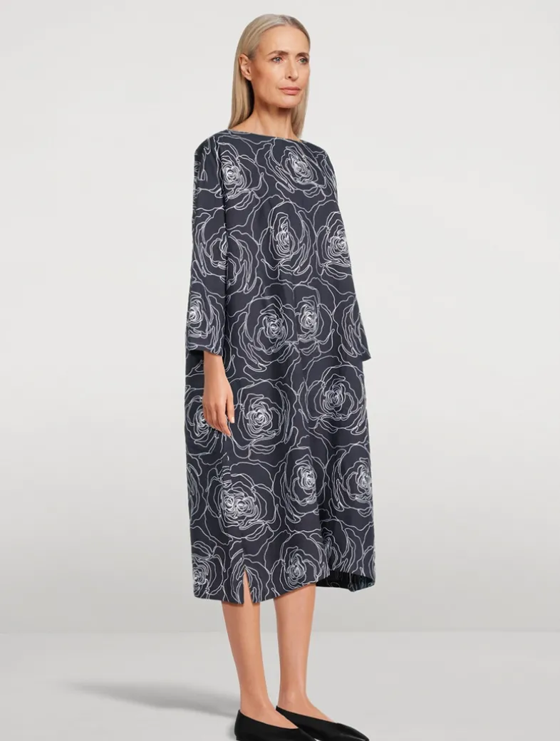 An embroidered oversized floral pattern graces this tunic dress. The flowing design is cut with a bateau neckline and long sleeves, all constructed from a mix of linen and cotton.