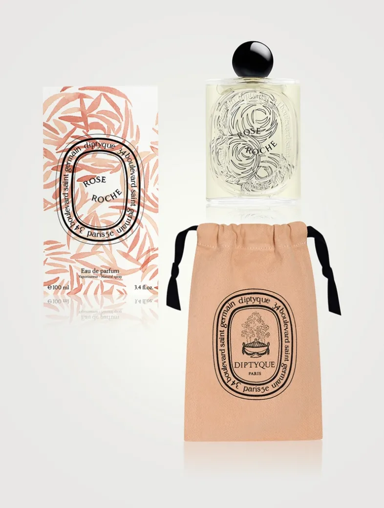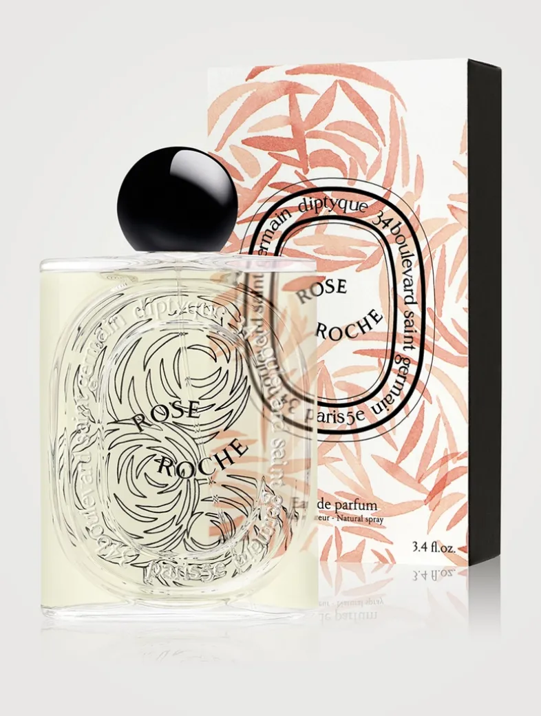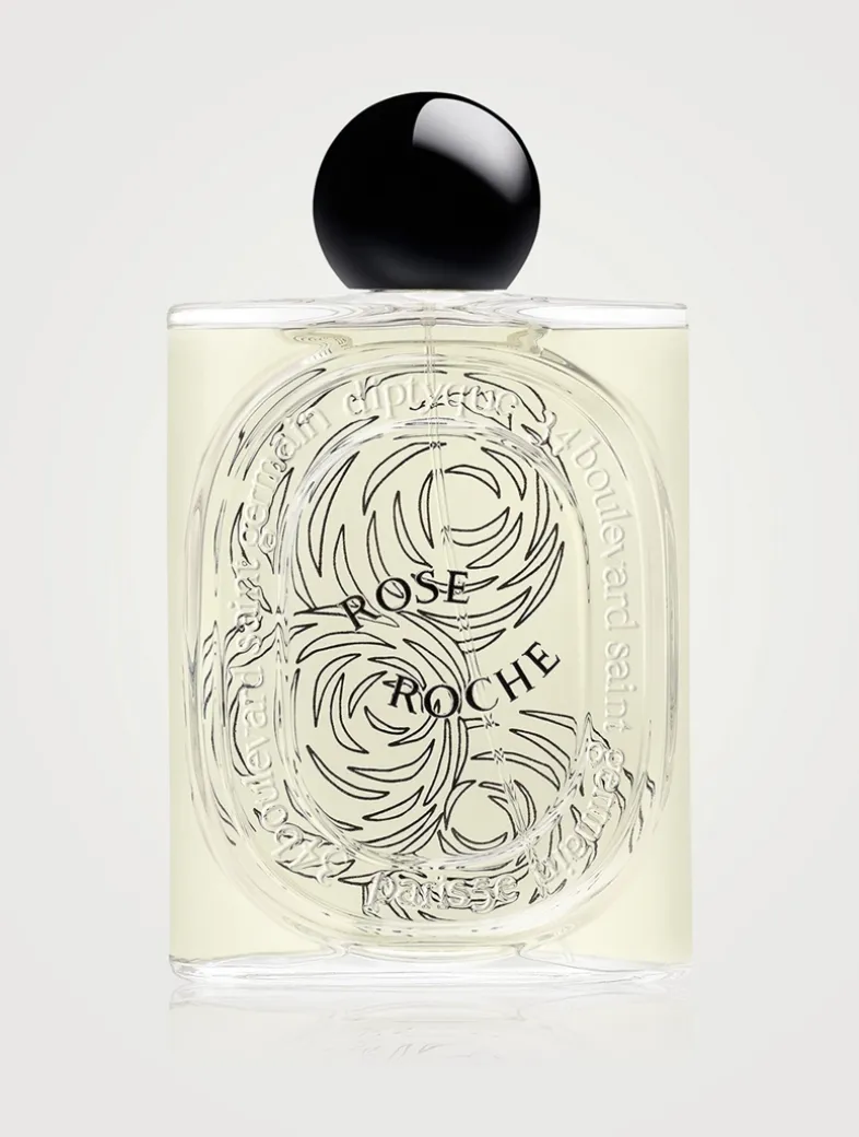 Rose Roche fragrance conjures up the imaginary fragrance of the desert rose: an encounter between lemon, centifolia rose, and patchouli notes. A potent fragrance with a lingering sillage, its name playing on the contrast between the vegetable—transient, delicate—and the mineral—eternal. On the bottle, this timeless and unique rose is illustrated in fine black lines. It appears again on the sleeve, this time emerging in subtle shades of pink.