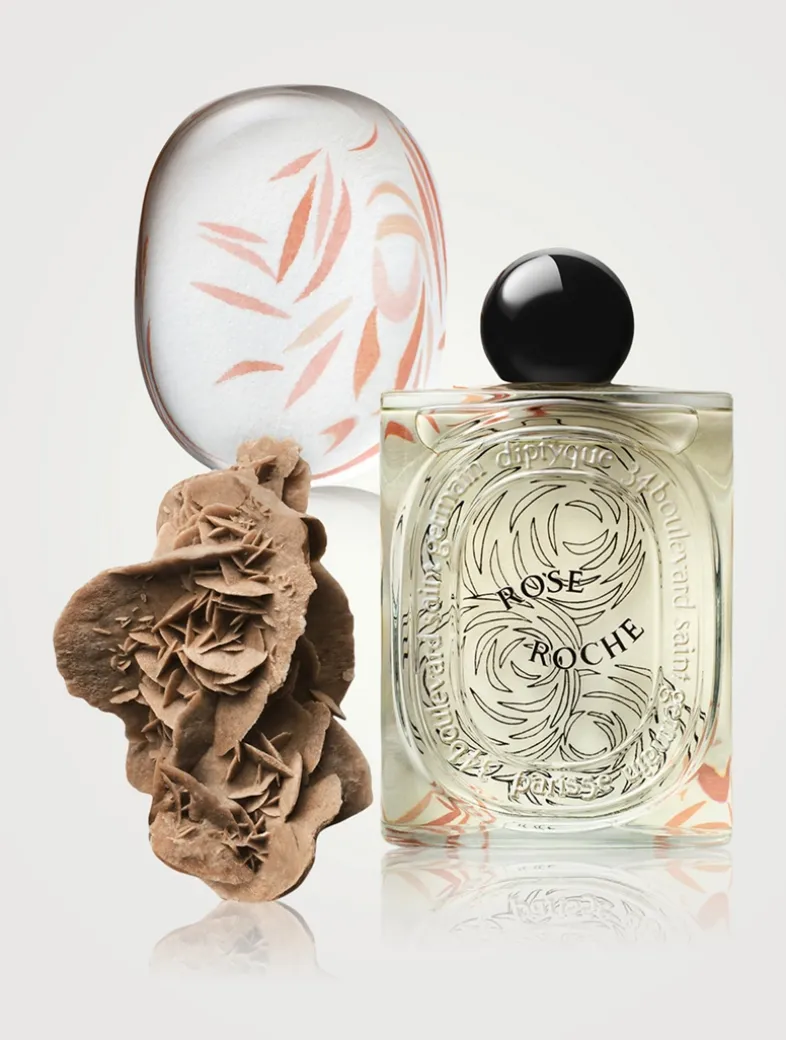 Rose Roche evokes the desert rose, a bloom shaped by air, water, and the sun. Exposed to the winds of the desert, over time this mineral, crystalline flower develops its graphic and distinctive contours. Combining the work of perfumer Fabrice Pellegrin with that of drawing artist Nigel Peake, this olfactory and visual composition breathes life into a timeless rose revered as a masterpiece of accidental precision.
