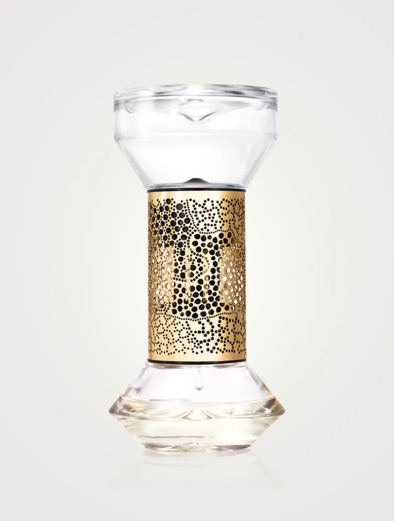 Driven by a spirit of innovation, diptyque has reinvented the concept of home fragrance with the hourglass diffuser. Just turn it over to begin a new diffusion cycle lasting approximately one hour and enjoy a delightful sensory experience: the diptyque hour. Ideal for scenting small spaces over a period of several months until the fragrance evaporates completely, it can then be refilled one time with the same scent. Roses Hourglass Diffuser releases a fragrance reminiscent of a rose freshly plucked from the garden, brimming with natural fragrance.