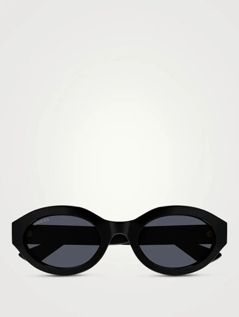 Crafted with an injection frame, these contemporary oval-shaped sunglasses are illuminated with a gold-toned Double G logo across the temples.
