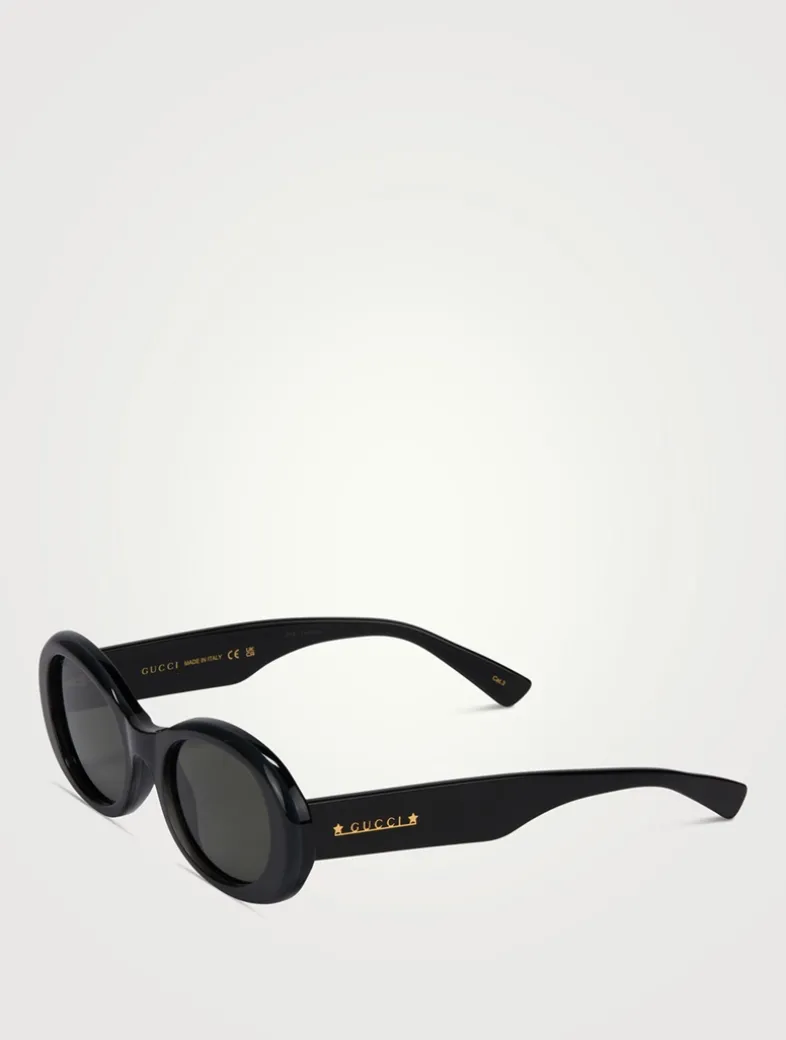 Presented in recycled acetate, these oval-frame sunglasses have a retro-inspired aesthetic, accentuated by two stars and Gucci logo lettering on the temples.