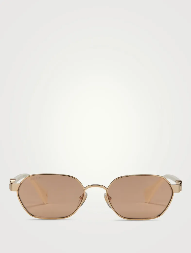Combining metal and recycled acetate, these narrow sunglasses are illuminated with a gold-toned Double G logo at the temples.