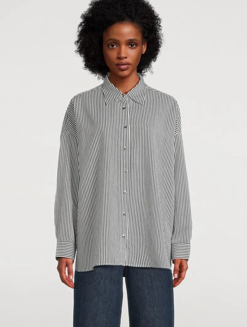 Crafted from an airy poplin, the Roux Shirt has billowy sleeves that complement the oversized fit. A classic striped print completes the look.