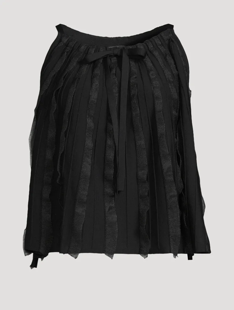 This boatneck top, made of a viscose-blend plain knit, is embellished with a matching bow. The style is embellished with all-over voluminous ruches making it ultra feminine.