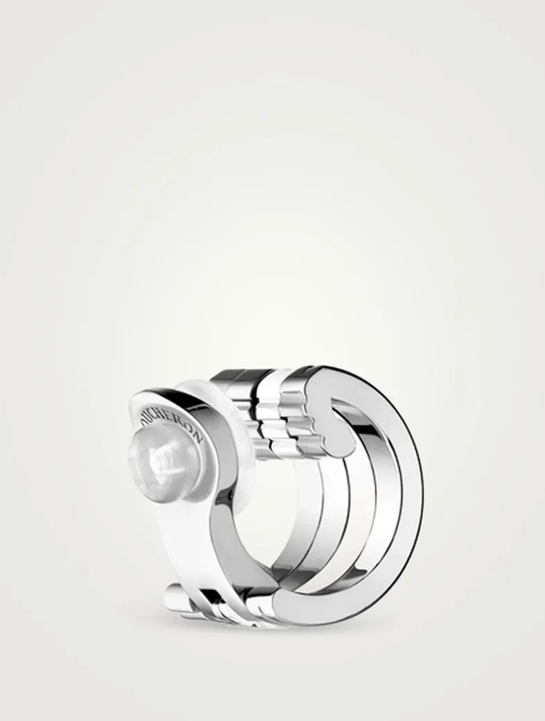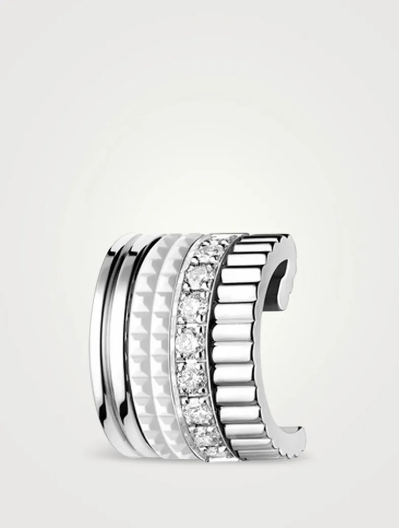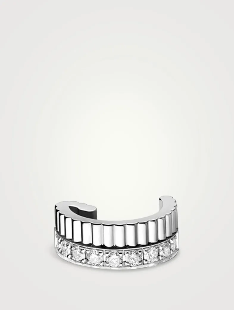 Featuring House motifs, this single clip earring in white gold is adorned with white hyceram and a row of 8 diamonds.
