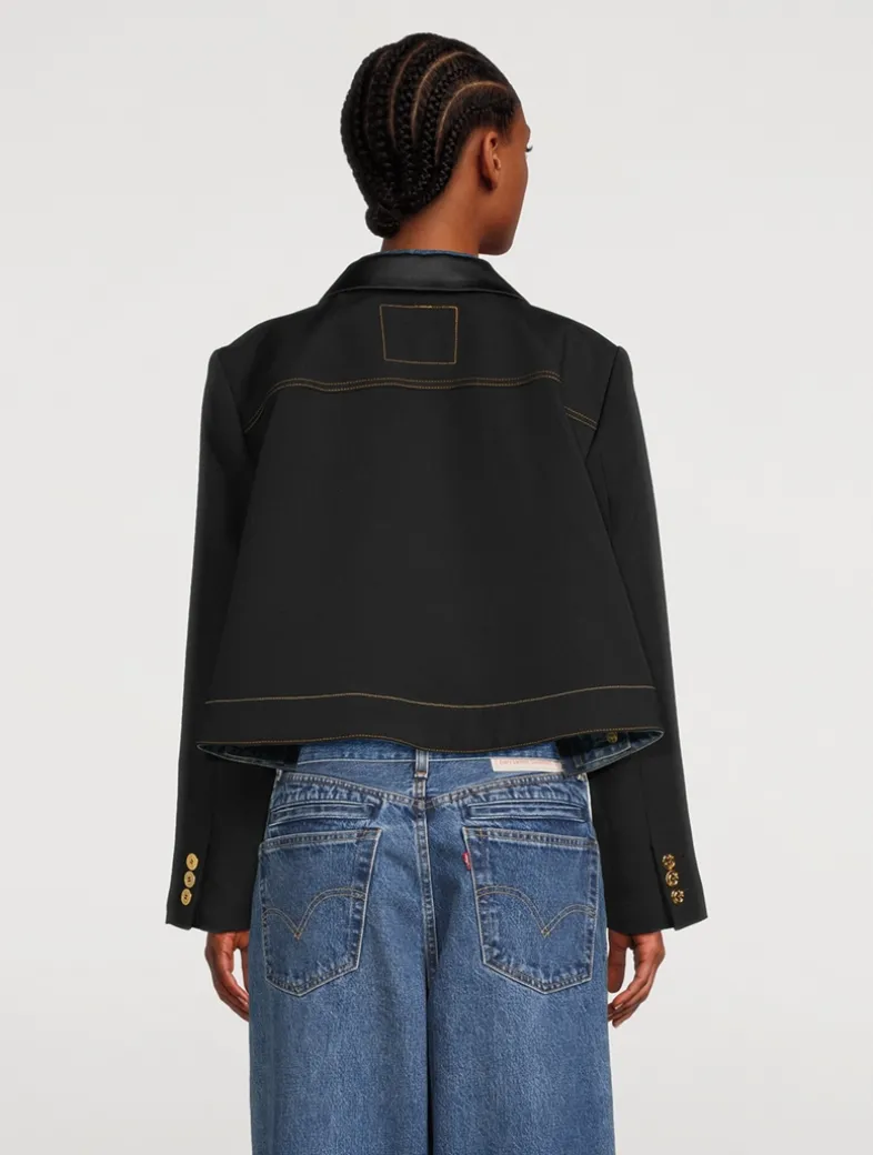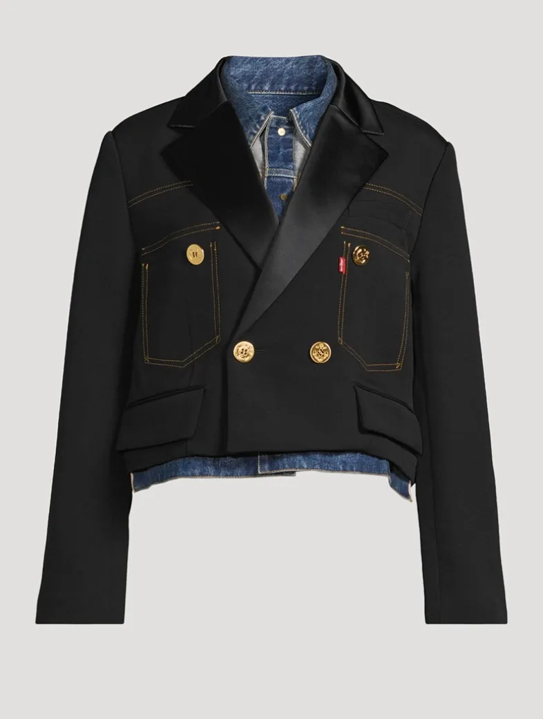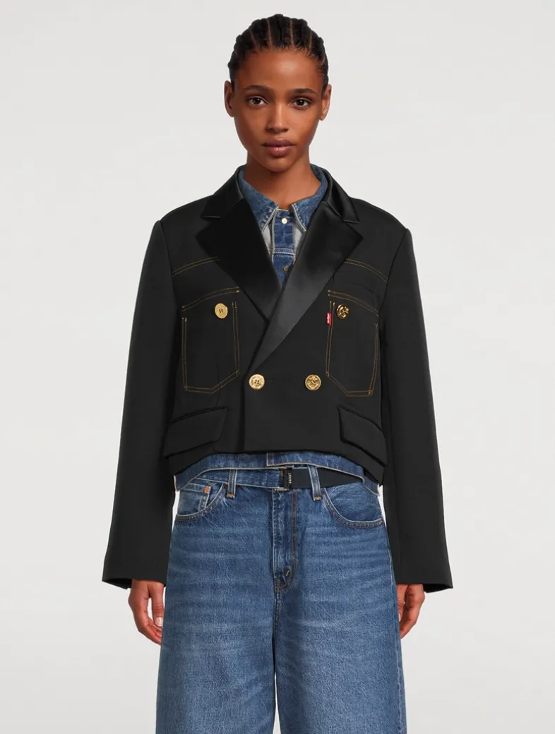 This ground-breaking collection reimagines Levi’s® iconic silhouettes through sacai’s distinctive lens of hybridization and experimental design, celebrating the heritage of Levi’s® denim craftsmanship. This topper features sacai’s proprietary matelassé twill with jacket detailing on the interior.