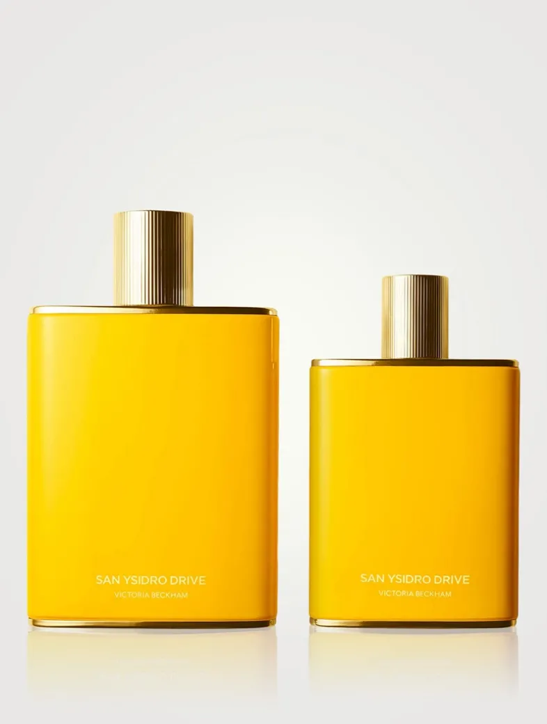 Each responsibly-crafted fragrance is bottled in a flacon inspired by a vintage parfum bottle Victoria collected while travelling. The yellow enamel of the San Ysidro Drive bottle is reminiscent of the Southern California sun.