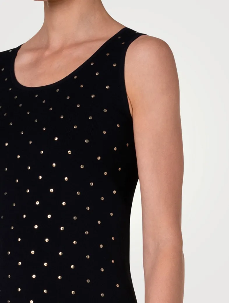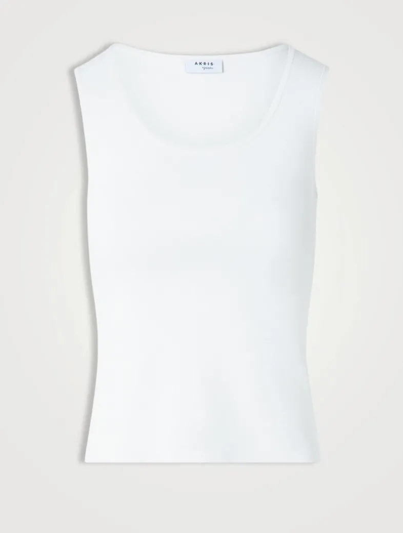 Crafted of a lightweight viscose knit, this sleeveless top is designed with a rounded neckline and a fitted silhouette.