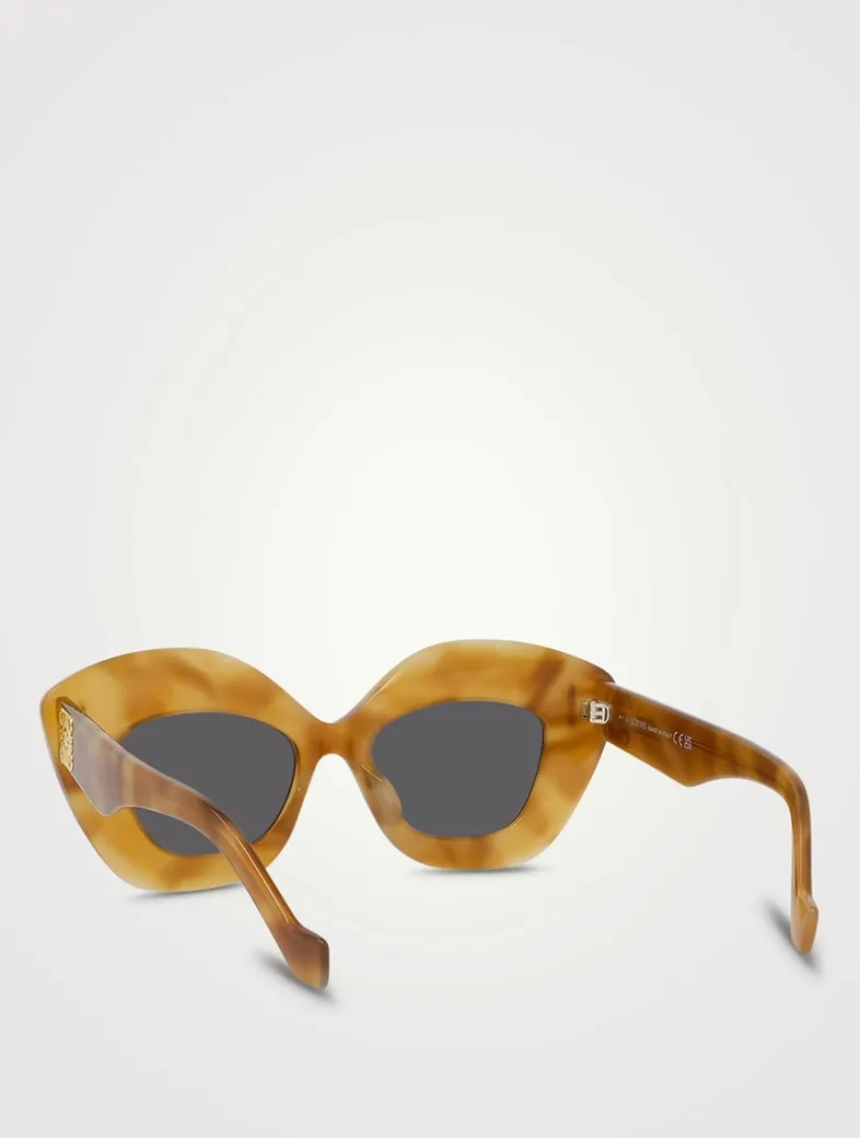This new cat eye screen shape is a member of the Anagram family, with a super flat front featuring metal embellishment and decorative Anagram on the temples.
