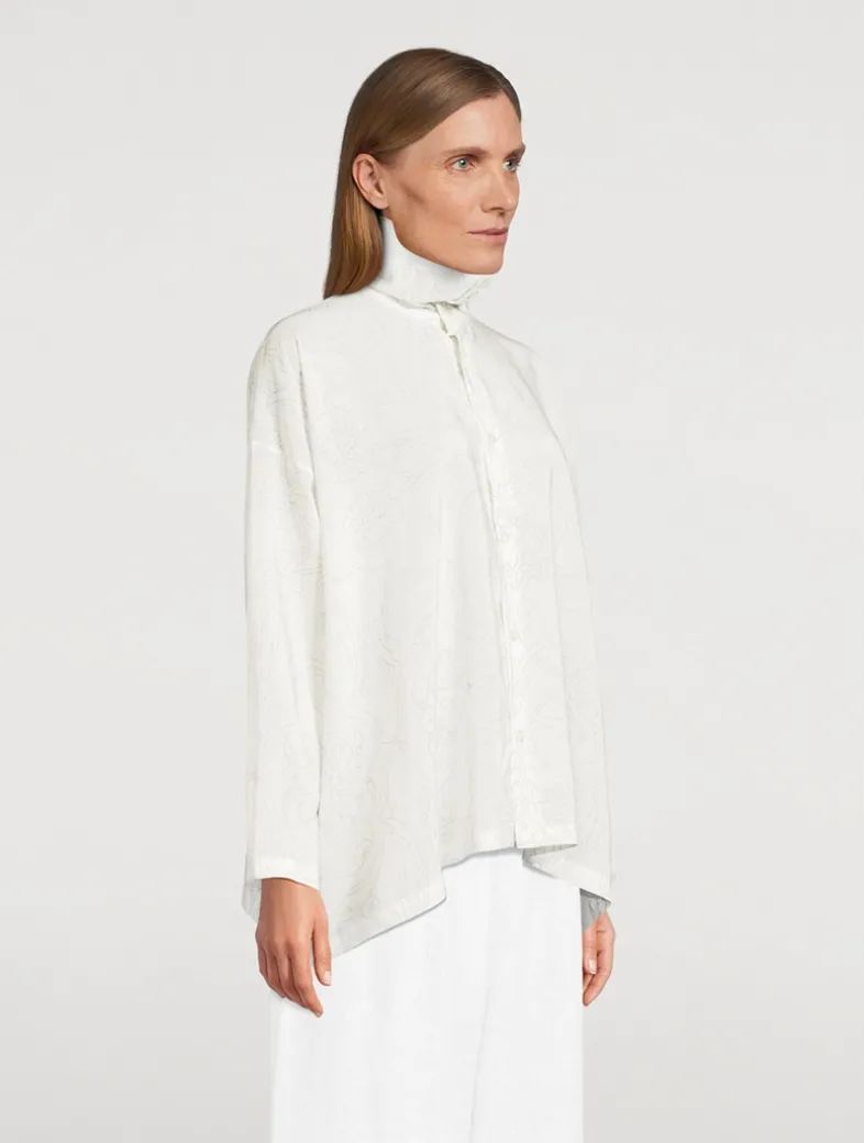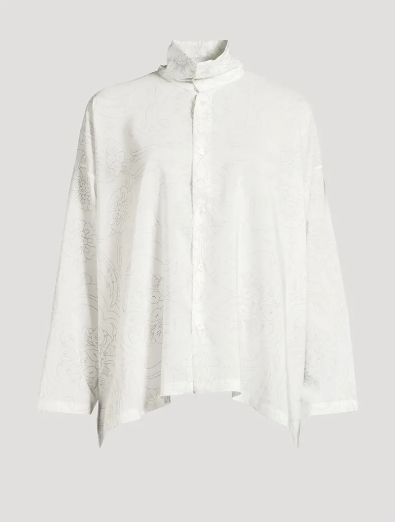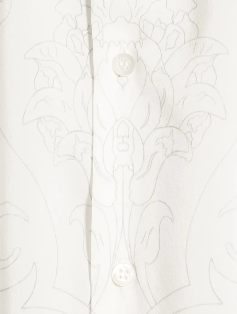 Featuring an ottoman ‘Kutahya’ pencil drawn tile print, this oversized shirt is crafted of a lightweight silk with a fluid cut. It has a generous silhouette with dropped shoulders, a buttoned closure, and a slouchy neckline.