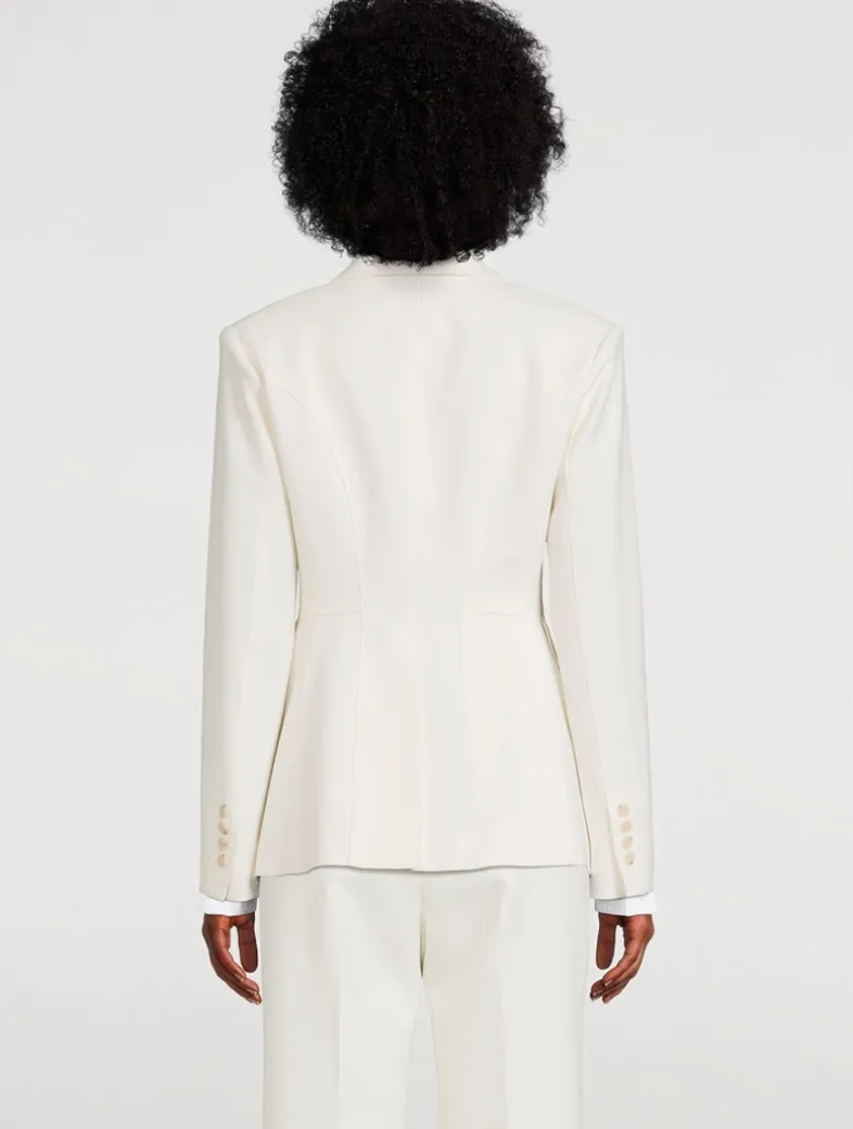Moderately tailored, this new stretch blazer silhouette features a horizontal waist seam and contoured back seaming detail. This garment fits true to size, take your usual size.
