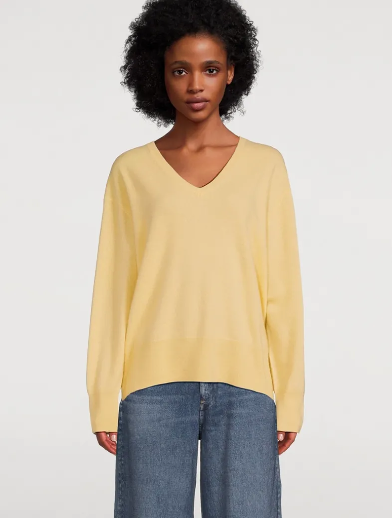 This slouchy V-neck features Majestic Filatures’ incredibly soft and luxurious European cashmere. This makes for a lightweight feel and a soft interior that won’t pill, stretch, or fade. Crafted in Italy.