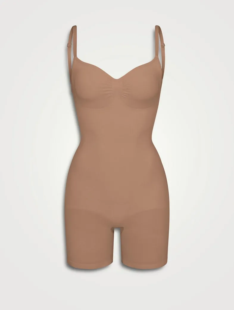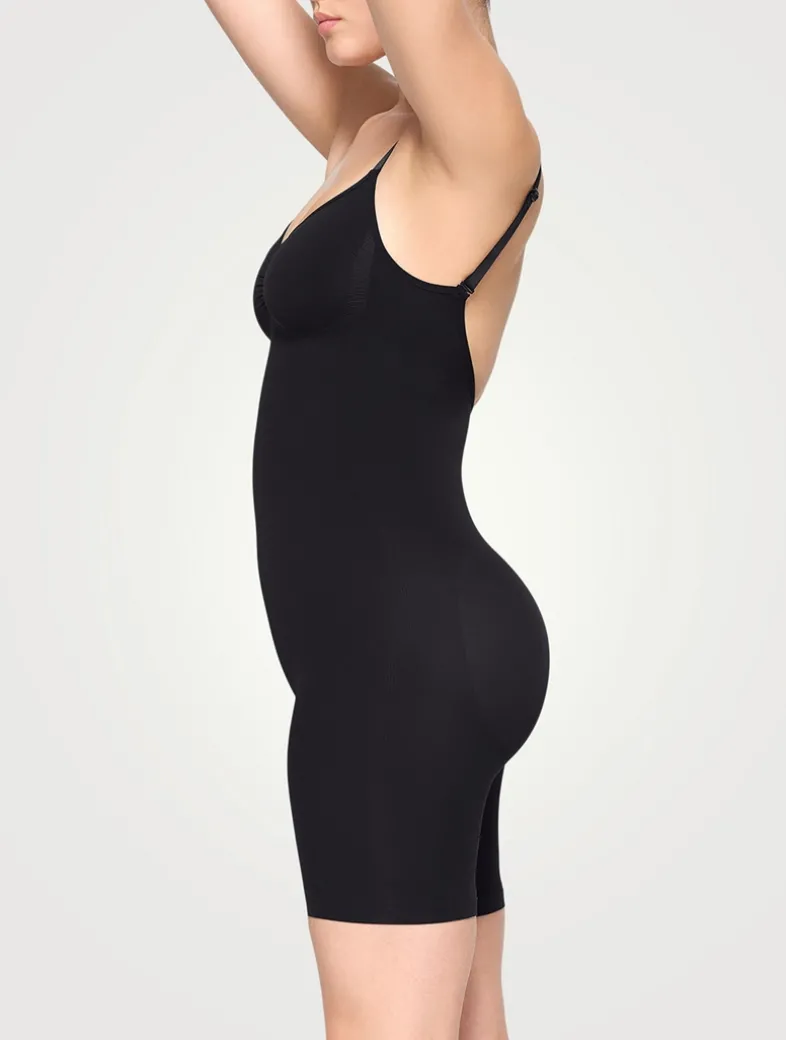 A sculpting bodysuit that sculpts silhouette, cinches waist, and smooth thighs while providing support and lift for your curves. Featuring a deep scoop back that makes it the perfect backless shapewear option.