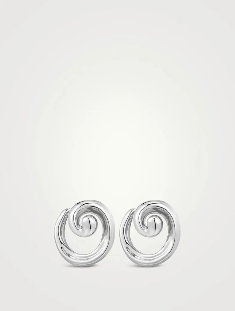These stud earrings feature a unique, open coil shape. All Luv Aj jewellery is waterproof and tarnish resistant. Luv Aj uses Ion Plating, which is a Physical Vapor Deposition (PVD) process used to create durable, long-lasting finishes on metal. The base metal is brass, which then is plated with at least 0.1 micron of 14K Gold or Silver, plus e-coating which qualifies it to pass waterproof tests. 100% nickel-free and cadmium-free.