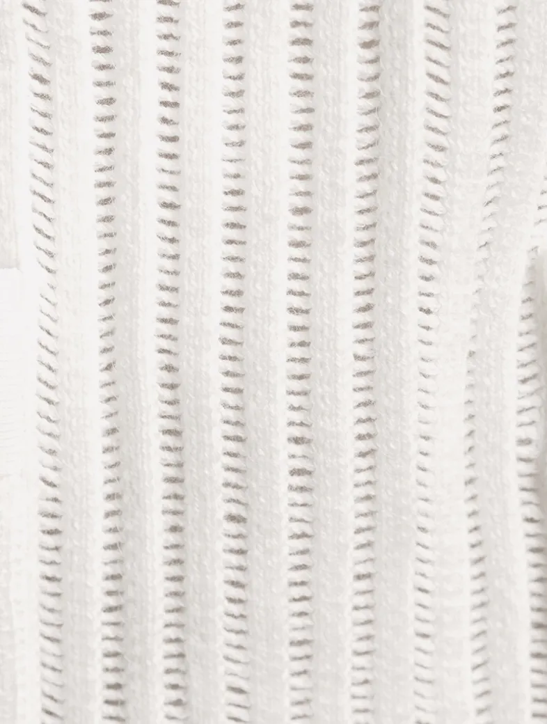 A glam spin on a refined classic, this cashmere and cotton crochet mini skirt is embellished with shimmering sequins. It has an elasticated waistband, a pair of functional pockets, and rib-knit trim at the hem.