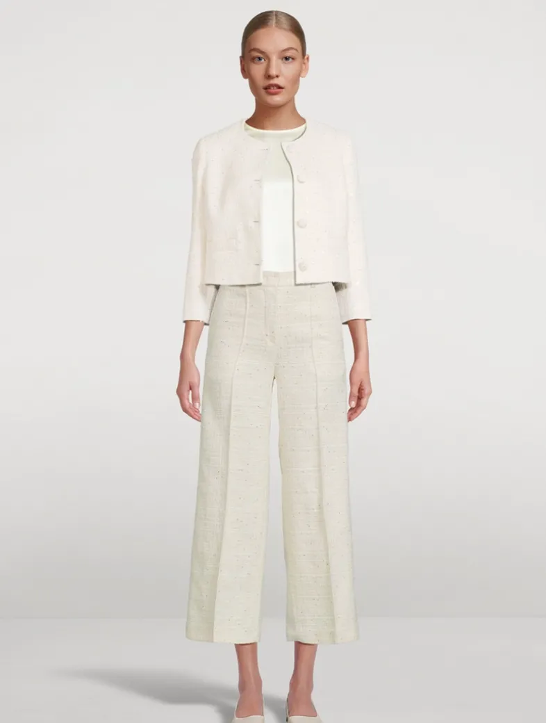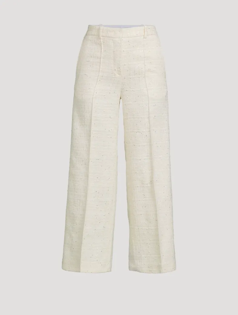 A crisp cut and cropped length keep the focus on the standout fabric in these trousers from Eleventy. The design is detailed with sequins to amp up the party appeal of the business-wear design.