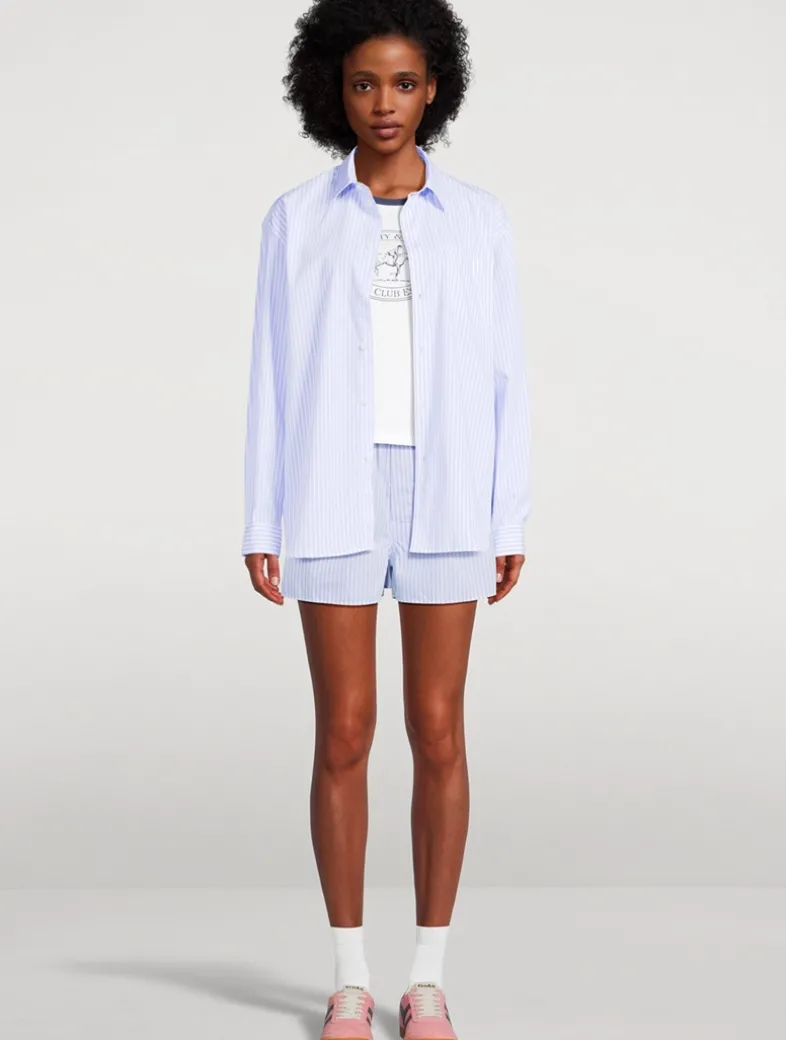 Made from pure cotton poplin with stripes at one of Portugal’s finest historical shirtmakers, these boxers are a luxe wardrobe staple. The elastic waistband features the brand’s logo, and the design is finished with a back pocket.