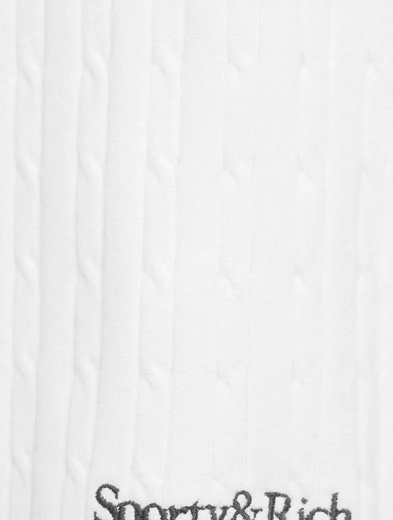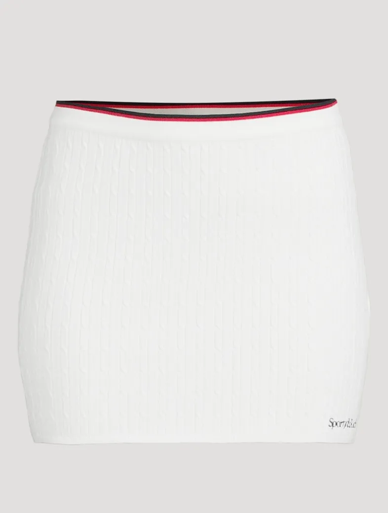 This slim-fit knit skirt features a classic cabled pattern and a striped elastic waistband with Sporty & Rich’s signature serif logo.