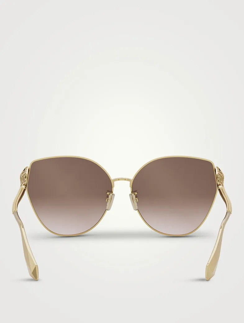 Crafted with an oversized metal frame, this limited edition style features gold-plated Serpenti temples with sparkling hand-set stones.