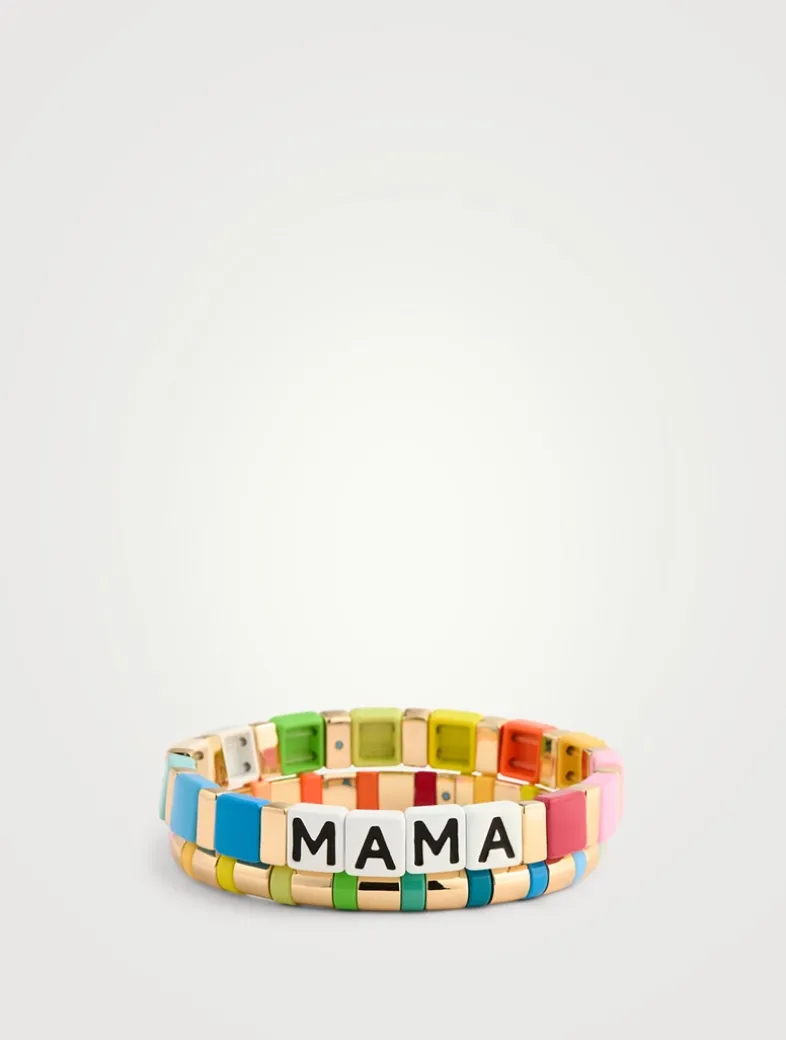This set of two stretch bracelets pairs the Mama Rainbow bracelet with the Not Just Another Rainbow Brite bracelet.
