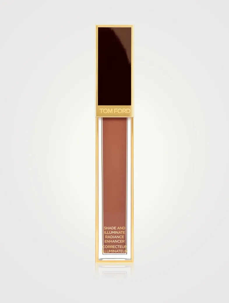 Inspired by TOM FORD’s philosophy of enhancing facial architecture, Shade and Illuminate Radiance Enhancer, an intuitive, skincare-infused corrector captures light to boost skin’s radiance with a customized, dimensional glow. Infused with hyaluronic acid, shade and illuminate radiance enhancer is a hydrating skincare-makeup hybrid that also color-corrects the complexion and enhances face architecture. This hydrating skincare hybrid is powered by sublimely flattering, complexion-correcting peach pigments to minimize discoloration and create a smooth canvas for a soft-light glow. Wear alone or with shade and illuminate essentials.